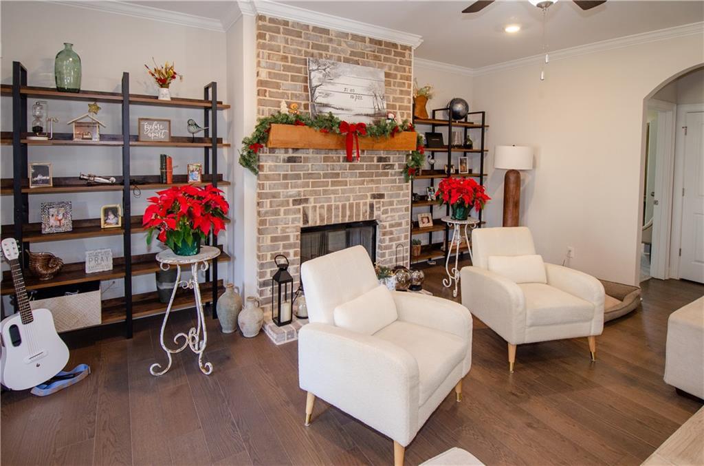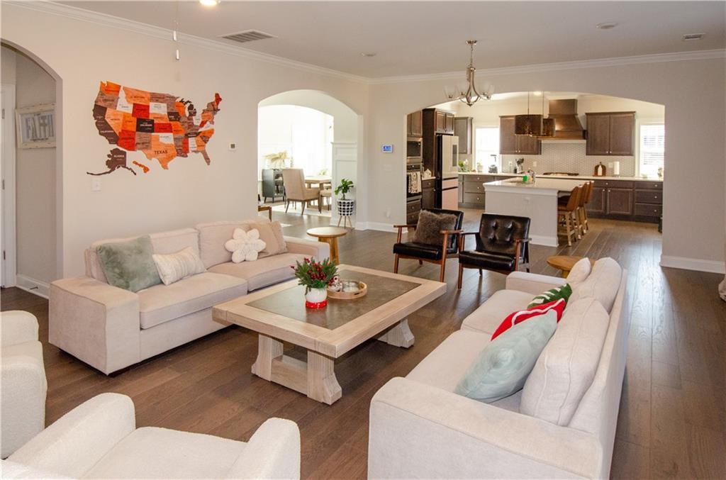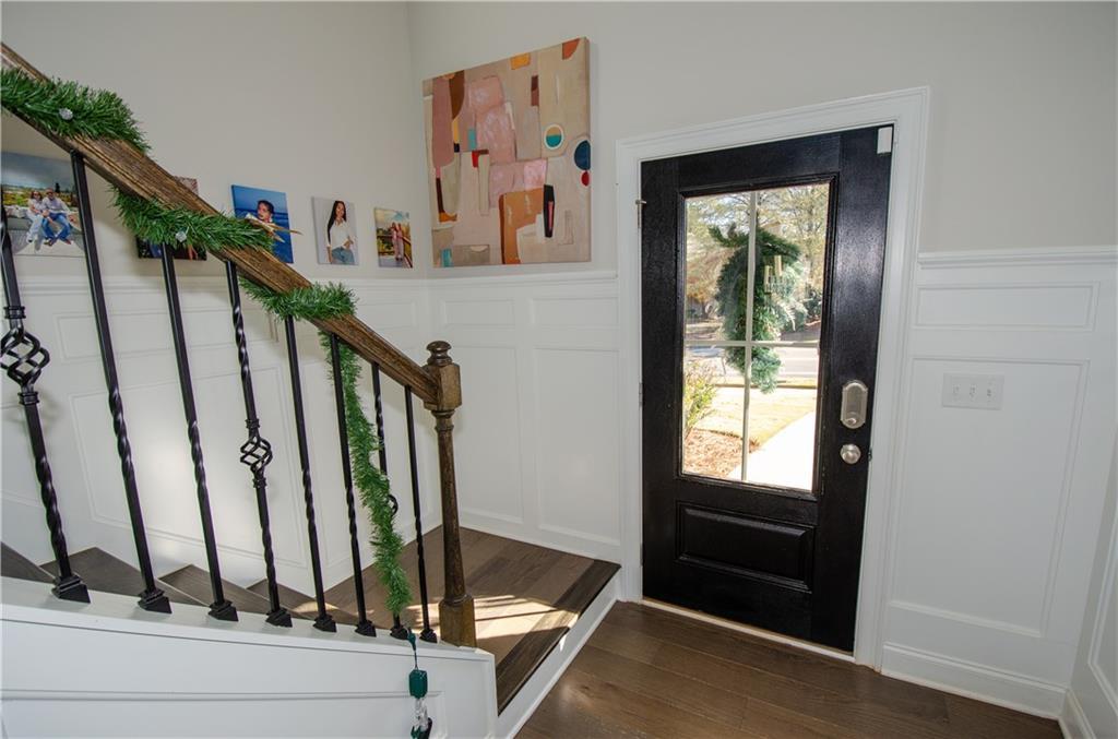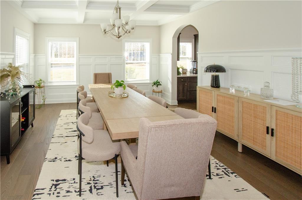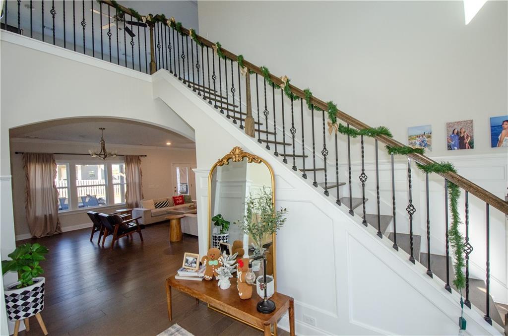 Description: If you're thinking like new, don't miss this beautiful home. This homes welcomes you with all the southern charm you can imagine. Entering the front door one immediately notices the large dining room with coffered ceiling and judges paneling. From there is the open concept gourmet kitchen which features a fully functioning island, gas cooktop, quartz counter tops, and tiled backsplash. Off the kitchen you'll find a breakfast area open to the family room which features a fireplace with cedar mantle. Also featured on the main level is the master bedroom, laundry and powder room. The master bath features a spa inspired feeling with double vanities, separate shower and tub. There are three bedrooms upstairs with two full bathrooms, and a large media area. Outside is a fun day porch with a wood burning fireplace and a rear load two car garage. This is an amazing home that you'll have to see.