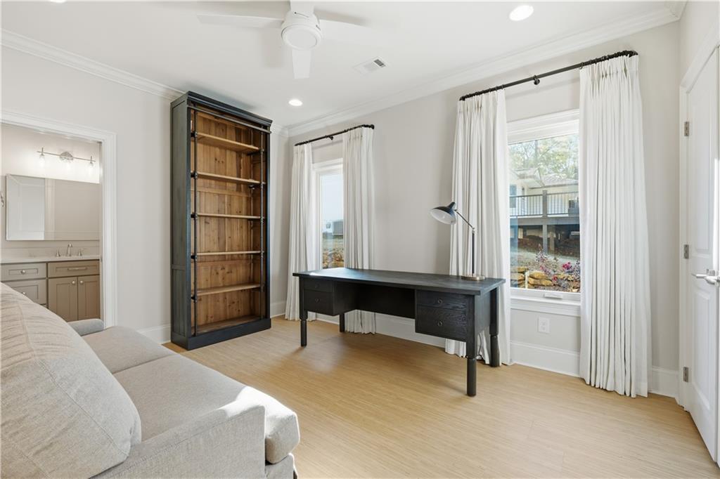 Description: Never-lived-in and truly one of a kind, this 2023 custom home by Michael Allen Homes delivers the rare opportunity to own new construction in a classic, established neighborhood just minutes from Auburn University. Designed entirely on one level, the thoughtfully planned layout makes everyday living refreshingly simple while accommodating a wide range of lifestyles. Neutral, timeless finishes create a clean, cohesive aesthetic throughout. The open kitchen and living area anchor the home, offering an inviting space for gathering and entertaining, highlighted by a substantial built-in cabinet for both function and visual impact, along with a four-panel full-light door system that floods the space with natural light. Two bedroom wings flank the main living areas, creating a well-balanced floor plan. The primary suite offers a calm retreat with thoughtful conveniences, including automatic shades. The expansive bath is designed for relaxation and order, featuring a grand zero-entry shower, dual vanities, and a well-designed closet. A highly functional, carefully laid out laundry room sits just off the primary suite. Nearby, the fourth bedroom—with its own bath featuring a tiled tub/shower combination, linen tower, and generous vanity—works beautifully as a study, nursery, or playroom. Bedrooms two and three are located in a private hallway on the opposite side of the home, along with a well-appointed full bath, complete with a linen closet. A covered rear porch, accessed from the living room, seamlessly extends the living space outdoors. Additional features include a convenient drop zone at the owner’s entry and tasteful wheelchair-accessible design elements integrated throughout the home. All appliances—refrigerator, washer, and dryer—convey. The property may also be purchased fully furnished (with brand new, high-end furnishings) for a truly move-in-ready experience. Interested buyers should contact the listing agent for furnished pricing details.