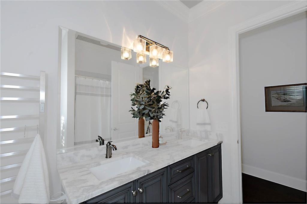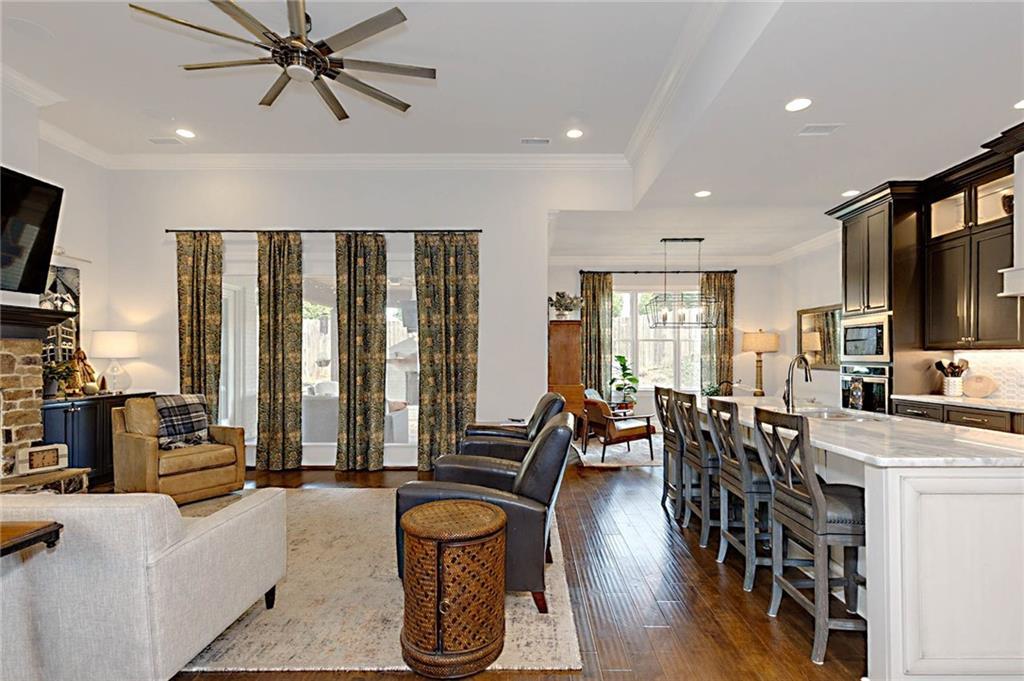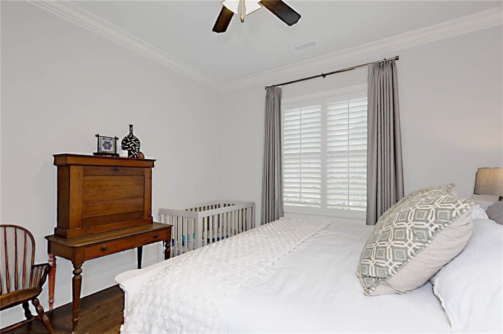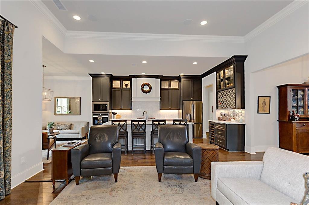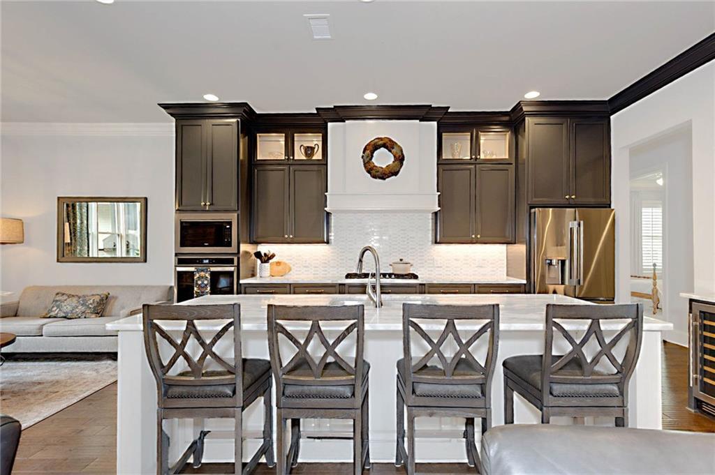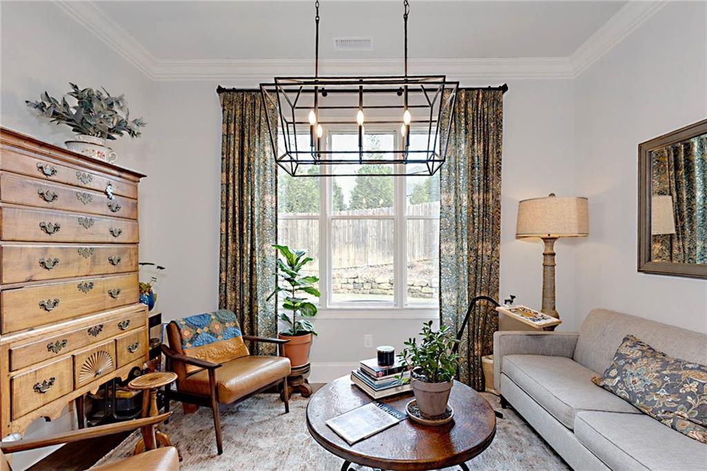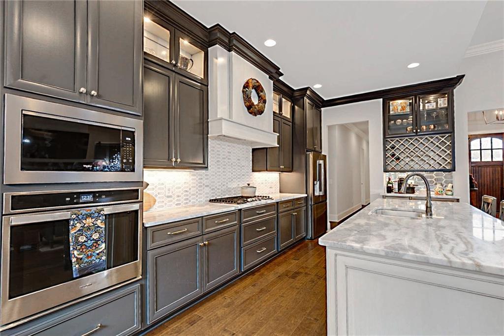 Description: Welcome to this stunning custom-built home in The Overlook at Moore's Mill, where luxury meets comfort. As you enter, you are greeted by a spacious formal dining room that flows seamlessly into the sunlit living room and gourmet kitchen, creating an inviting atmosphere ideal for both entertaining and relaxation. The kitchen is a chef's dream, showcasing two-tone custom cabinetry, honed marble countertops, and a large island with seating for four. Enjoy casual meals in the cozy breakfast nook, while the butler’s pantry, complete with wine racks and a wine cooler, adds elegance. Top-of-the-line stainless steel appliances, including a gas cooktop and a walk-in pantry with custom shelving, elevate this culinary space. The living room serves as a warm retreat, featuring a gas log fireplace with a stone surround and custom built-ins. Step directly onto the charming rear porch for outdoor enjoyment. The luxurious master suite stands out with a wood accent wall and direct porch access, while the master bathroom boasts a soaking tub, double vanity with honed marble countertops, and a fully tiled zero-entry shower. A custom closet with built-in drawers completes this sanctuary. On the opposite side, you'll find two additional bedrooms and a beautifully updated full bathroom. This wing also includes a spacious laundry room with ample counter space, a wash sink, and new tile. Upstairs, discover a versatile secondary living area, a large bedroom, and a bathroom, along with a flex room that was previously a secondary closet. The entire upper level features new hardwood flooring. Step onto the covered back porch, perfect for year-round enjoyment with a tongue-and-groove ceiling, flagstone flooring, and a custom wood-burning fireplace. Additional features: Sonos sound system in house, Spray foam insulation, Infinity HVAC system, whole home surge protector, fenced back yard, Oversized 23' deep X 24' Wide garage & golf cart path access to Moores Mill club . Photos to come Friday