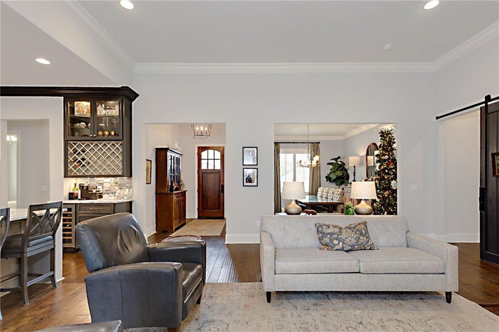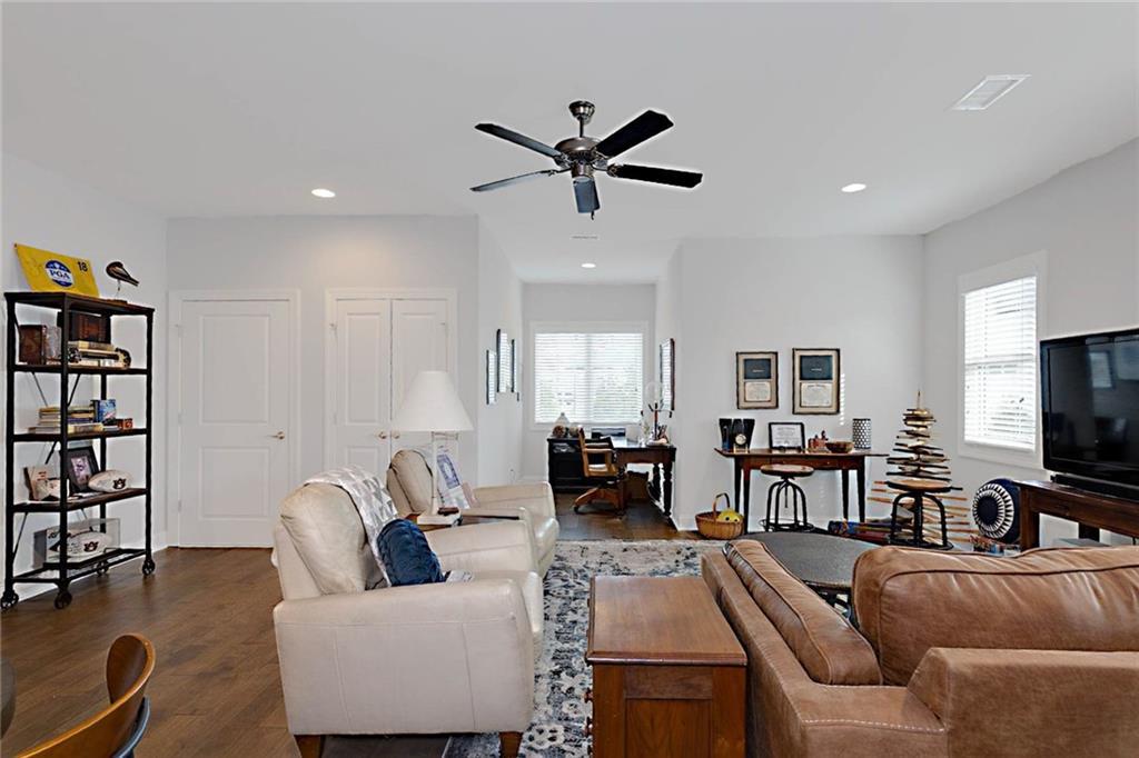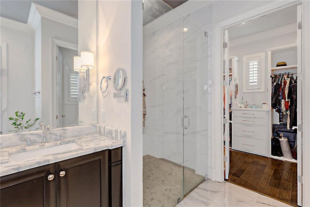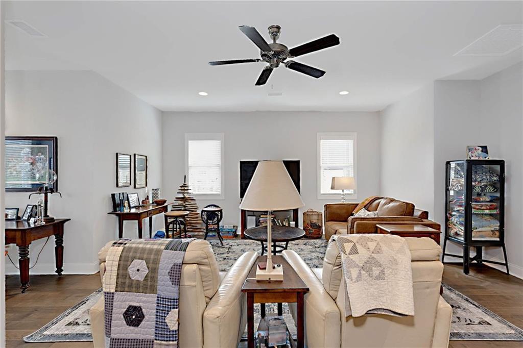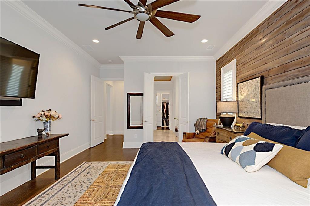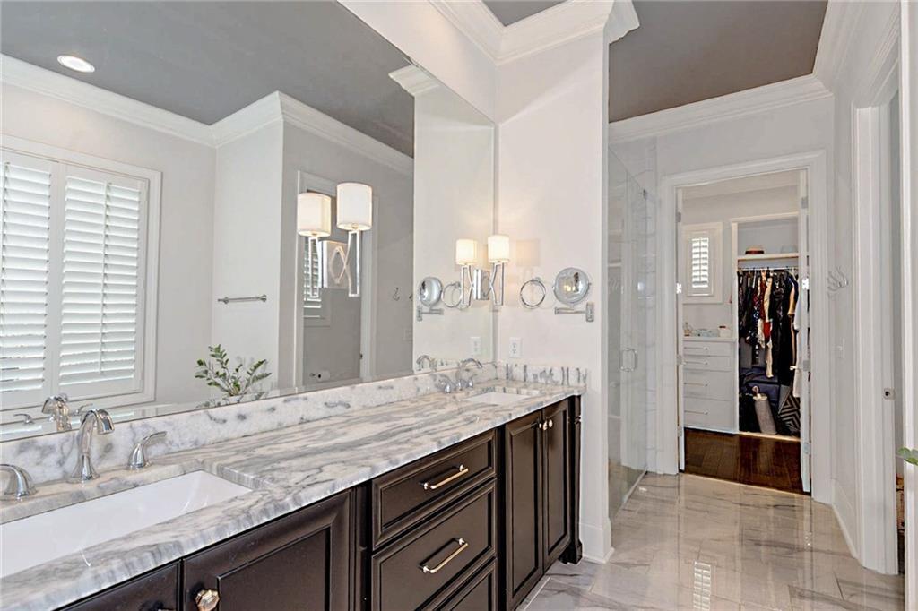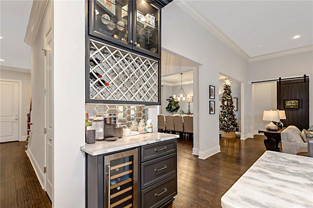 Description: Welcome to this stunning custom-built home in The Overlook at Moore's Mill, where luxury meets comfort. As you enter, you are greeted by a spacious formal dining room that flows seamlessly into the sunlit living room and gourmet kitchen, creating an inviting atmosphere ideal for both entertaining and relaxation. The kitchen is a chef's dream, showcasing two-tone custom cabinetry, honed marble countertops, and a large island with seating for four. Enjoy casual meals in the cozy breakfast nook, while the butler’s pantry, complete with wine racks and a wine cooler, adds elegance. Top-of-the-line stainless steel appliances, including a gas cooktop and a walk-in pantry with custom shelving, elevate this culinary space. The living room serves as a warm retreat, featuring a gas log fireplace with a stone surround and custom built-ins. Step directly onto the charming rear porch for outdoor enjoyment. The luxurious master suite stands out with a wood accent wall and direct porch access, while the master bathroom boasts a soaking tub, double vanity with honed marble countertops, and a fully tiled zero-entry shower. A custom closet with built-in drawers completes this sanctuary. On the opposite side, you'll find two additional bedrooms and a beautifully updated full bathroom. This wing also includes a spacious laundry room with ample counter space, a wash sink, and new tile. Upstairs, discover a versatile secondary living area, a large bedroom, and a bathroom, along with a flex room that was previously a secondary closet. The entire upper level features new hardwood flooring. Step onto the covered back porch, perfect for year-round enjoyment with a tongue-and-groove ceiling, flagstone flooring, and a custom wood-burning fireplace. Additional features: Sonos sound system in house, Spray foam insulation, Infinity HVAC system, whole home surge protector, fenced back yard, Oversized 23' deep X 24' Wide garage & golf cart path access to Moores Mill club . Photos to come Friday