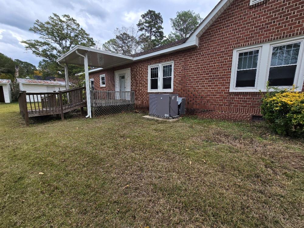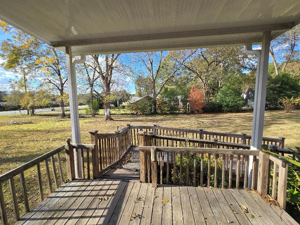 Description: One of a kind historic home on a large fenced corner lot. Built in 1945 this home has lots of charm and character. Brick exterior has a vinyl trim. The side porch is decked and covered and leads to an enclosed sunroom. There's a double carport and two detached storage buildings as well. One has a roll top door. The other side of the house facing the yard also has a covered deck. Inside the home has a large kitchen that has one really large utility room off to the side that leads to the carport. There is a dining area, a den, a living room, 3 bedrooms, and 2 baths. Lots of nooks and crannies to put stuff in too! Very unique home. Home has some of the original wood floors as well.