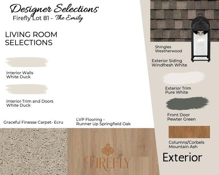 Description: Quick Move-In Designer Home!! This will be ready to close by Mid October 2025! Welcome to the Emily on Lot 81 in Firefly! The Emily floor plan is a beautiful 4 bedroom 3 bathroom plan! Upon entering the home, you’re greeted by an open concept dining space, kitchen & living room. The spacious living room features large windows & vaulted ceilings. In the kitchen we have a large center island & ample cabinet space. As you make your way through the home, bedrooms two & three will be on one side, joined together by a Jack & Jill bathroom that features a large single vanity. On the opposite side of the home, you will find the primary bedroom & en-suite bathroom. The owners bedroom features large windows that overlook the 11x7 back patio, and a spacious walk-in closet. Bedroom four is on the back of the home along with a full hall bath. Visit our website to see all of the amenities the Firefly Community has to offer!
