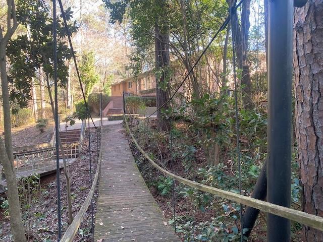 Description: Lovely all-brick home with over 5 acres of beautifully landscaped grounds. Terraced backyard featured in Southern Living when first built. This property includes large upper and lower flagstone terraces, a bricked retaining wall overlooking an over-sized in-ground pool and a covered picnic/grill area. The entertainment possibilities are endless. For the kids, there is a suspension bridge leading to a tree-house. The home offers two living areas with woodburning fireplaces. 3 Large Bedrooms/tiled baths. Custom drapes throughout. Large mudroom. As an added bonus, you have a walk-down partial basement/multi-purpose room with a plumbed 1/2 bath that just needs to be finished out. The basement walks out to lower terrace/firepit. Roof just one year old/Geo-thermal HVAC system replaced 5 years ago is serviced by well-water. This is a must see property for someone looking for space/privacy or investors that might want to use the adjacent lot for access to the rear acreage for development purposes. Just a stones throw to the Chattahoochee River for kayaking and fishing!