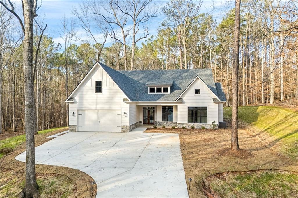 Description: Brand new in StillWaters at Lake Martin! Set on a private, wooded lot spanning nearly an acre, this thoughtfully designed single-story residence offers 2,100 square feet with three bedrooms, two and a half baths, and a layout created for relaxed, everyday living. The heart of the home is an open living and kitchen space—ideal for gathering after a day on the lake or hosting friends on the weekend. The kitchen is both stylish and functional, featuring stainless steel appliances, a large island, farmhouse-style sink, quartz countertops, and a walk-in pantry. The primary suite provides a sense of privacy and calm, serving as a true retreat. Its spa-like bathroom includes a tiled, frameless walk-in shower and a freestanding soaking tub designed for unwinding. The primary closet is outfitted with built-in storage and connects directly to a well-appointed laundry room complete with cabinetry and a sink—adding everyday convenience with thoughtful design. Outdoor living is just as inviting, with a spacious covered back patio and the peaceful privacy of surrounding woods. Professionally installed landscape lighting enhances the home’s exterior, while lighting along both sides of the driveway creates a welcoming arrival and adds beauty and visibility after dark. Living in StillWaters means gated security and access to amenities including an 18-hole golf course, pool, clubhouse, fitness center, tennis courts, and optional marina access—placing Lake Martin’s lifestyle right at your doorstep. * Get up to 1% lender credit with use of Kim Bragg at Movement Mortgage for financing*