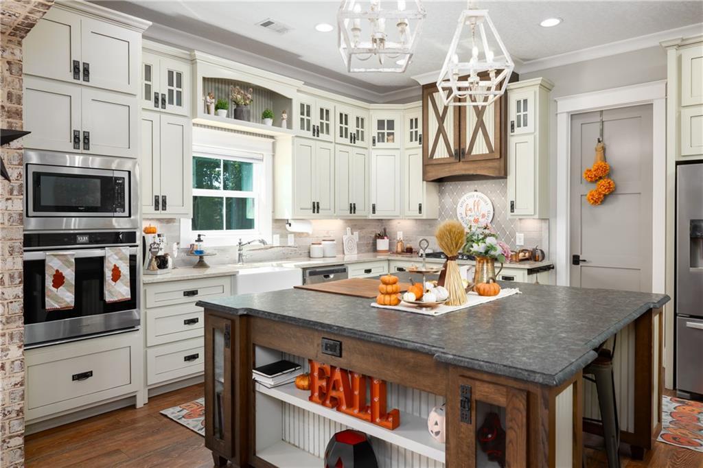 Description: Welcome to The Villas at St Andrews. This 5 bedroom, 3.5 bath home will captivate you the moment you pull into the driveway. You will be welcomed by an outdoor, wood burning fireplace with covered sitting area. Perfect for those summer evenings. Inside you will be greeted by the stunning beauty and quality construction at every corner. This first class kitchen will entice any person to tap into their inner chef. The kitchen features granite countertops, natural gas cooktop, island with cutting board built in conveniently just above the pullout garbage can for easy disposal. There's an abundance of cabinet space and counter space, plus a wall oven and microwave. The island has room to sit and take in the beauty of the dining and living areas. This home also has a room, currently used as an office, with built in dog kennel in the closet, and an ensuite bathroom as well as a 1/2 bathroom for guests. The open dining and living space is full of character as well with exposed brick, wood beams, unique ceilings, and a natural gas fireplace. The primary bedroom, which is on the main floor, is spacious with a walk in closet, and the ensuite bathroom is like no other. The dual sink vanity gives you plenty of space for storage, and the walk-in shower with claw foot soaking tub is one you must see to fully appreciate! Upstairs you will find 3 large rooms with good sized closets. There's a spacious full bathroom with dual vanity and custom tile in the tub/shower combo. The front porch overlooks a beautiful yard and oversized front porch. The fenced yard wraps around both sides of the home giving ample room to play, garden, and/or just enjoy the outdoors.This home also features a tankless hot water heater and 2 car garage with additional parking in the driveway.