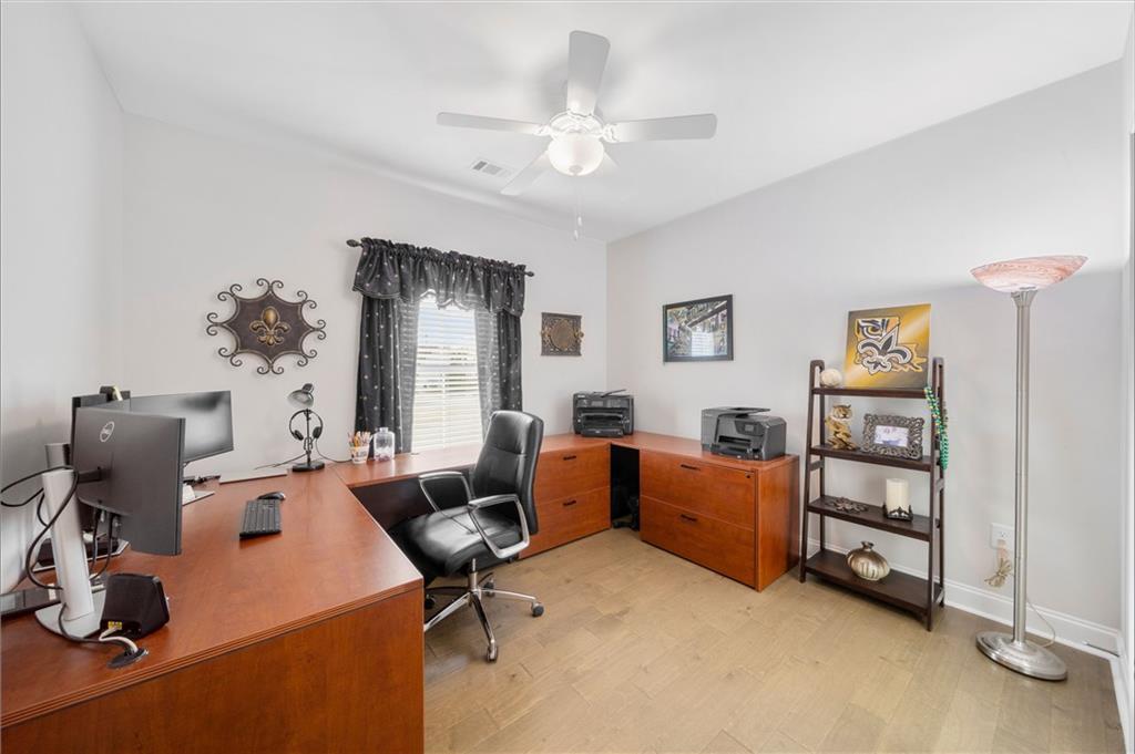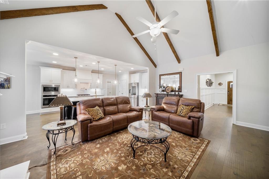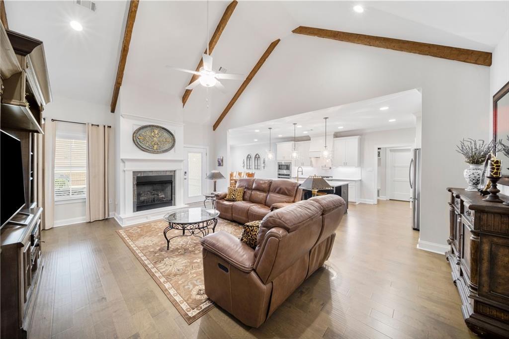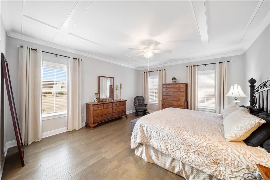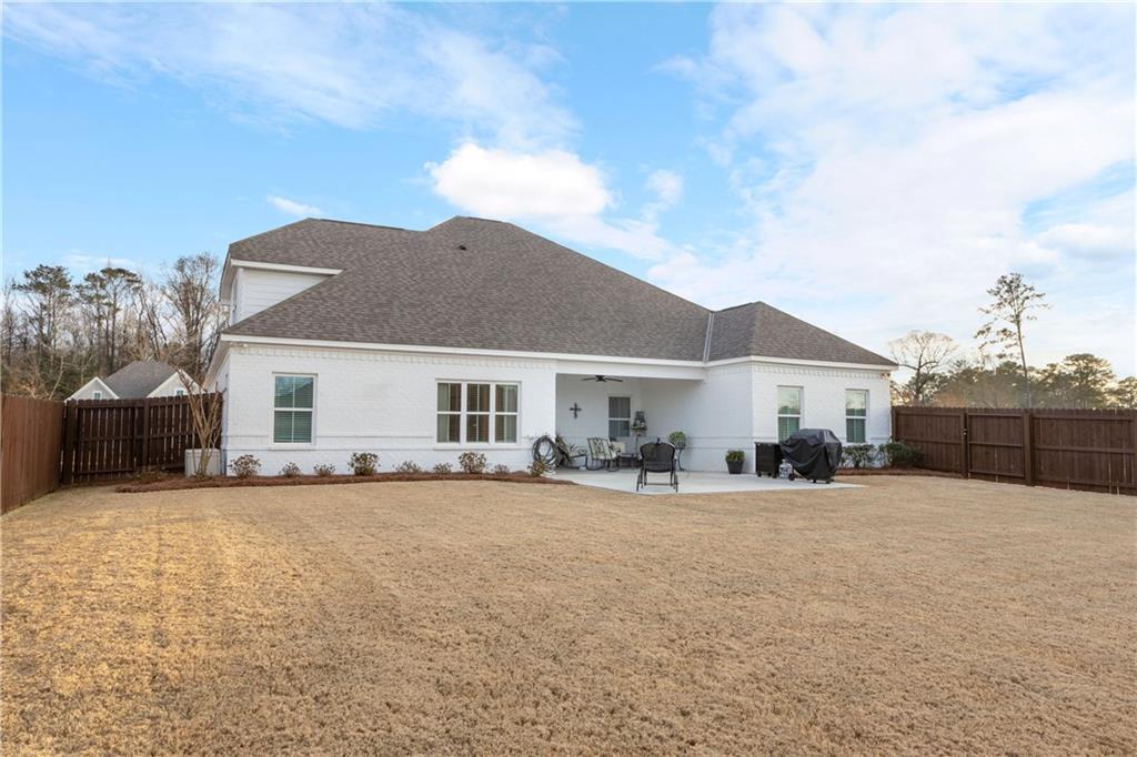 Description: This former model home in the Hidden Lakes neighborhood in Opelika is move-in ready and situated on a premium corner lot. This luxury home features a three-car garage, fully fenced yard, and beautifully landscaped grounds on all four sides with full irrigation. Enjoy enhanced outdoor living with an extended 18’ x 18’ back patio that provides ample space for entertaining. Inside, the open floor plan showcases upgraded finishes throughout, including wood flooring across the main level and Deako smart lighting throughout the home. The thoughtfully designed layout offers a primary suite on the main level plus an additional three guest bedrooms, one including a private ensuite, ideal for an in-law suite or visitors. The primary bath features a spa-like rainfall shower head and a freestanding tub. The kitchen is equipped with quartz countertops, built-in spice racks, a convenient pot filler, and a pantry with custom wood shelving. The upstairs includes a versatile bonus room or oversized bedroom with a full bath, perfect for a media room, home office, or flex space. A security system adds peace of mind, complementing the home’s modern conveniences. This home is in the center of an amenity-rich community that includes two pools, clubhouse, playground, chapel, and two fishable lakes. Walking and nature trails connect directly to the Opelika Sportsplex, providing easy access to recreation and outdoor activities.