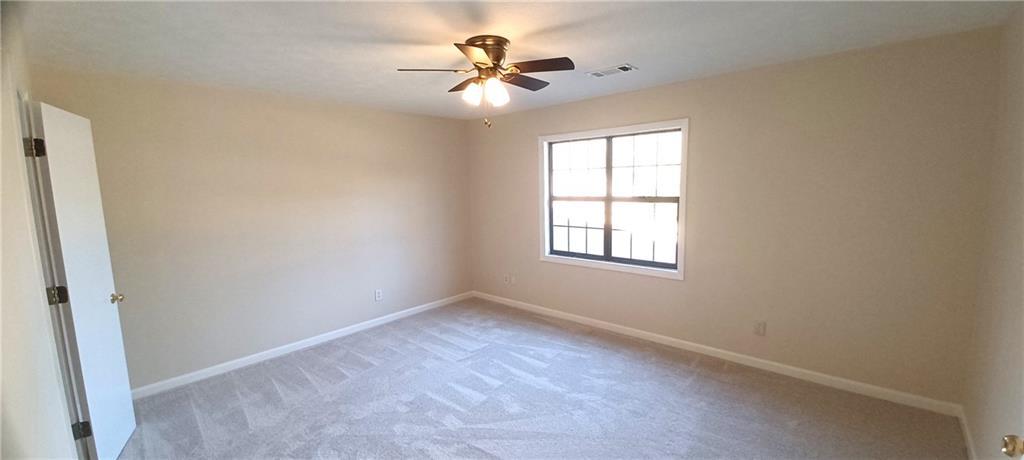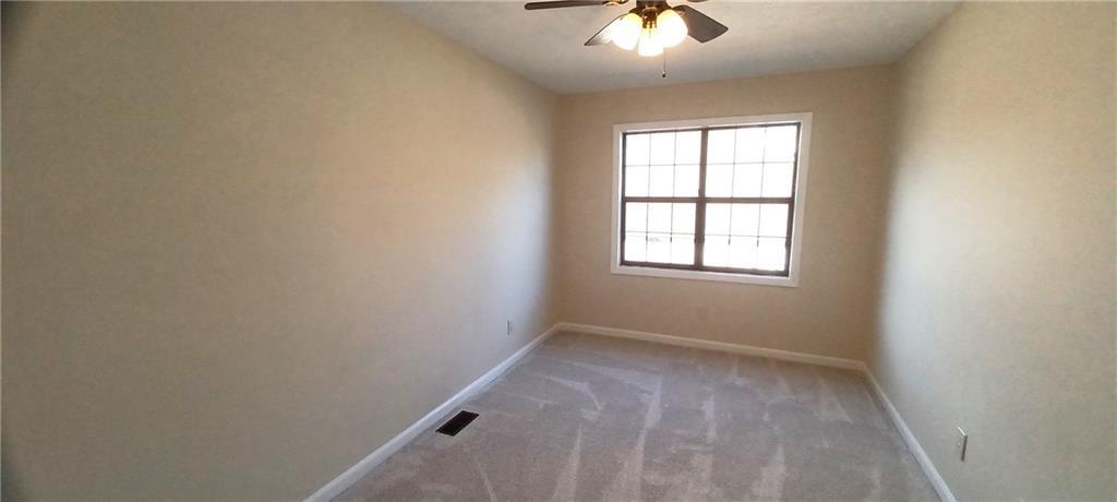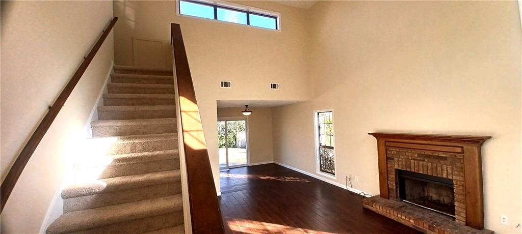 Description: Don’t miss this beautiful 1,333± sq. ft. home featuring 3 bedrooms and 2 bathrooms. The primary bedroom is conveniently located on the first floor, offering ample space for a king-size bed and a large closet. The primary bathroom includes a single vanity with generous cabinet storage, and the laundry area is located just off the bathroom for added convenience. The living room/den is spacious and inviting, highlighted by a wood-burning fireplace, vaulted ceilings, and abundant natural light. The kitchen offers plenty of cabinet space, a refrigerator that remains, and a new garbage disposal has been installed. Upstairs, you’ll find two additional bedrooms and a full bathroom. New carpet has been installed in all bedrooms, including the primary bedroom, and the entire interior has been freshly painted throughout. Both bathrooms have updated light fixtures above the vanities. The garage is generously sized with a dedicated storage area and built-in shelving. Outside, enjoy a fully fenced backyard with a patio just off the sliding glass doors, perfect for relaxing or entertaining. The home has been professionally cleaned and ready to show!