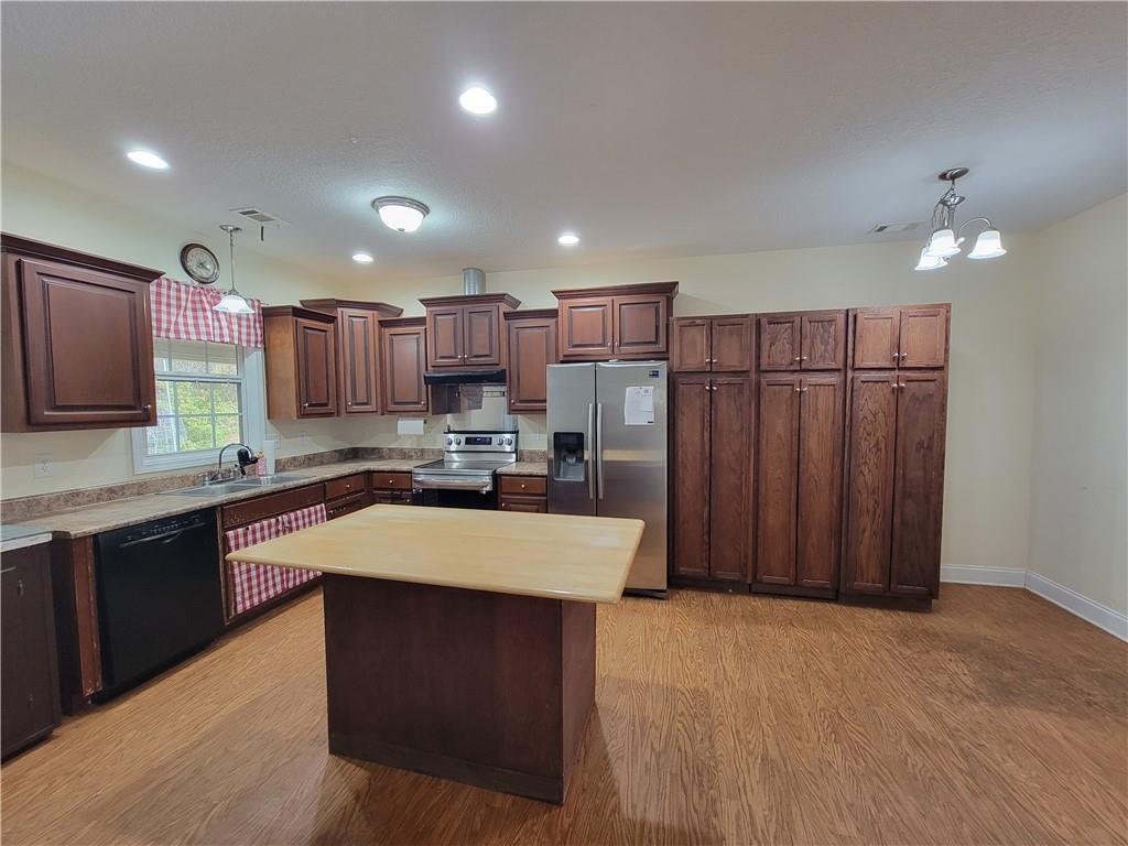 Description: Nice ranch style home sitting on +/- 4.72 acres with Lake Harding right across the street. This private retreat has a nice long driveway with the home situated to the back of the property. There is plenty of covered parking space with a two car garage, and a two car carport. There is a very large storage shed with 4 different entrances and sections that offers the perfect space for a "mancave", workshop, "she shed", playhouse, etc. The possibilities are endless. Stepping inside the home you will find all of the bedrooms down two halls to the right. There is a laundry room conveniently located across from the bedrooms, a full bathroom, and a large storage closet. Each bedroom has plenty of closet space. The primary room has a spacious walk-in closet and an ensuite bathroom with an accessible shower. The large open kitchen has ample cabinet space and room for a large dining table. The French doors off of the dining area lead to a back covered porch that extends the entire length of the home. This home is ready for new owners to come in and make it their own. With the proximity to Lake Harding and lot size, homes like this do not come on the market very often.