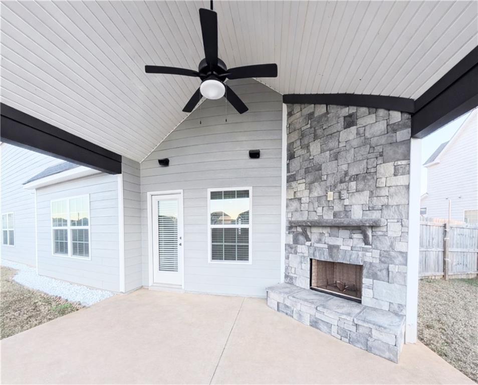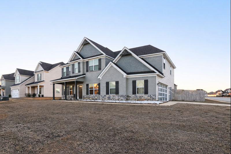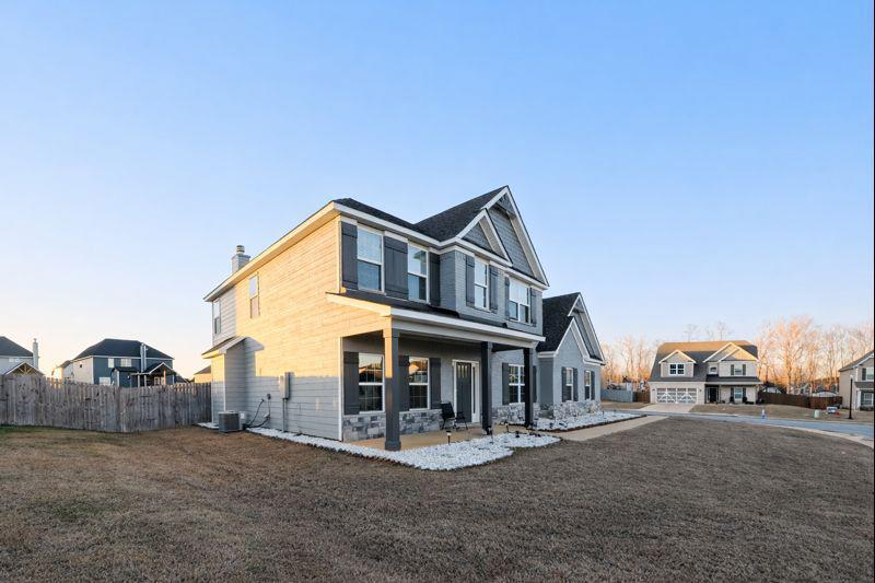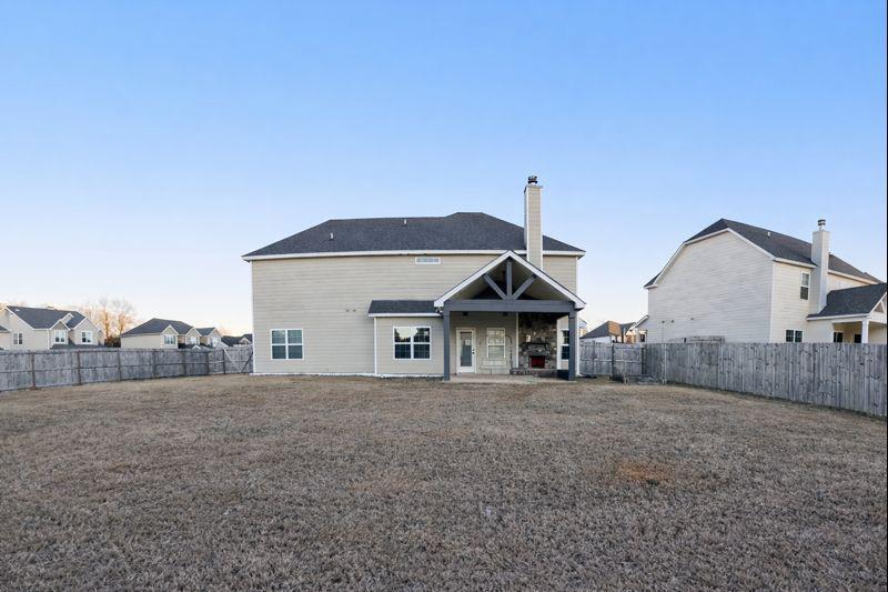 Description: Move-in-ready home located on a premium corner lot in Wyndham Village, featuring numerous upgrades. This spacious Jackson floor plan offers 3,324 sq. ft. with an impressive two-story foyer. The home boasts a stunning kitchen with stainless steel appliances, granite countertops, a large island with sink, and a walk-in pantry. The great room is warm and inviting with a wood-burning fireplace. The tiled laundry room is conveniently located on the second level. The expansive owner’s suite includes a double vanity, garden tub, separate shower, and an oversized walk-in closet. A guest suite is located on the main level, ideal for visitors. The owner’s entry from the two-car garage features a practical drop zone with built-in storage cubbies. This intelligent home is equipped with keyless entry, a touchless video doorbell, a control panel, and app-controlled front porch lighting for seamless remote access. Additional highlights include natural gas for cooking, the great room fireplace, and a tankless water heater. The Gameday patio is perfect for entertaining, complete with a wood-burning fireplace, speakers, ceiling fan, and pre-wiring for TV installation.