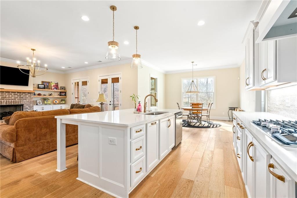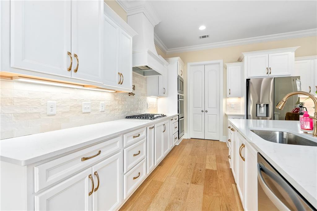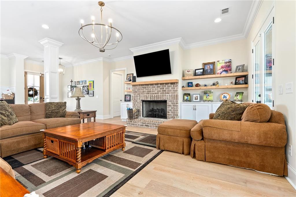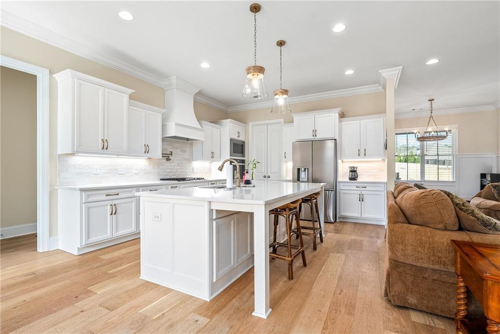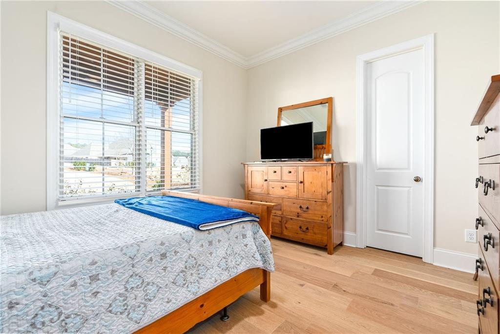 Description: This beautifully designed 4 bedroom, 3.5 bath home offers a split floor plan and exceptional spaces for everyday living and entertaining. The private primary suite is tucked away on one side of the home and features a custom walk in closet complete with a built in island, drawers, and elegant gold hardware. An adjoining laundry room adds convenience and functionality to the suite. The open concept main living area seamlessly connects the dining room, kitchen, and den, creating an ideal setting for gatherings and entertaining. The kitchen is complemented by a walk in pantry. Two additional bedrooms on the main level share a full bathroom. The main level features beautiful wood flooring throughout. Upstairs, the spacious fourth bedroom offers a full bath and walk-in closet, making it perfect for guests, a bonus room, or a private retreat. Outdoor living is just as impressive with a built in grilling station off the main floor and an additional covered entertaining area beneath the deck, finished with brick pavers-ideal for hosting year-round. The garage includes an extra large storage room that can easily be used for storage, a home gym, or flex space. This home combines comfort, style and versatility in every detail.