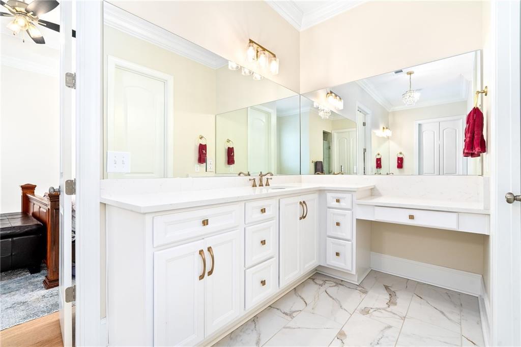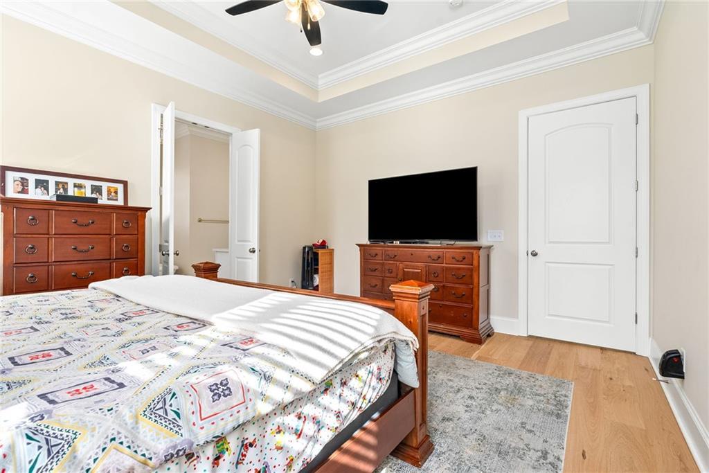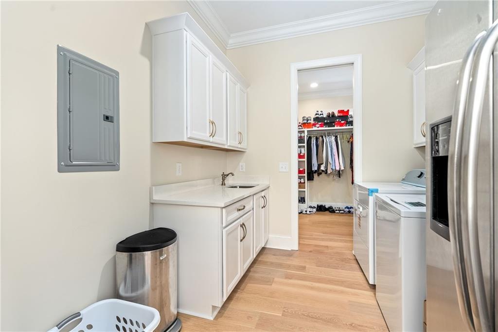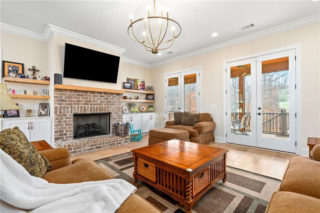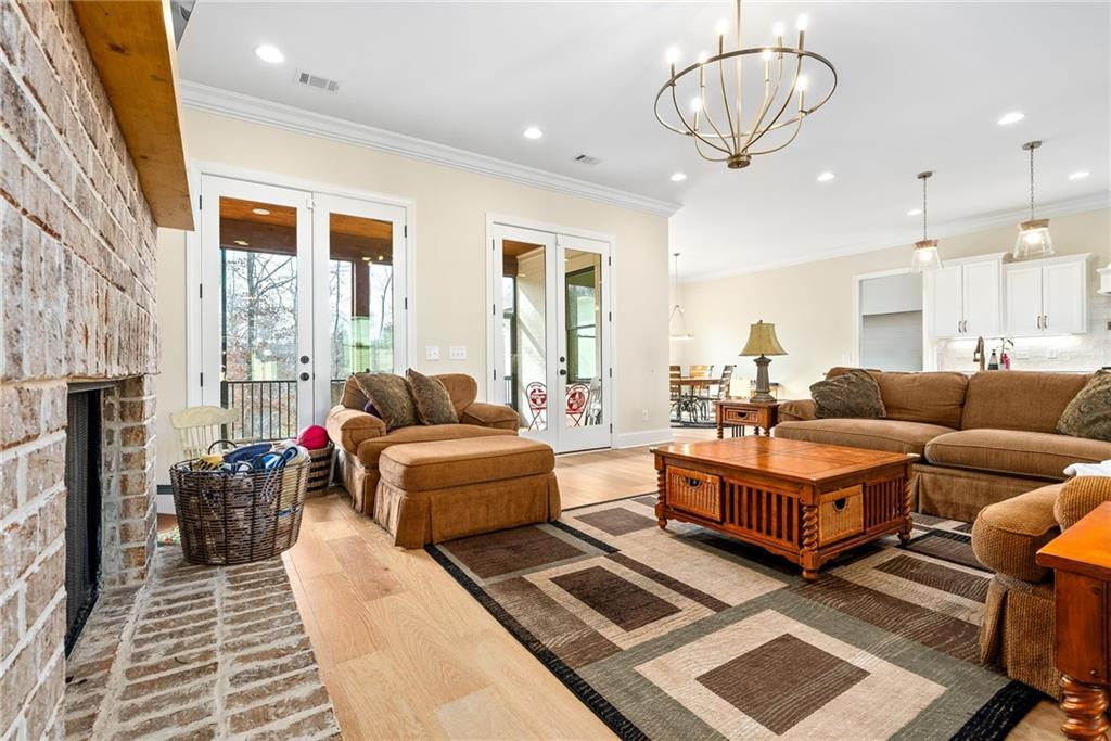 Description: This beautifully designed 4 bedroom, 3.5 bath home offers a split floor plan and exceptional spaces for everyday living and entertaining. The private primary suite is tucked away on one side of the home and features a custom walk in closet complete with a built in island, drawers, and elegant gold hardware. An adjoining laundry room adds convenience and functionality to the suite. The open concept main living area seamlessly connects the dining room, kitchen, and den, creating an ideal setting for gatherings and entertaining. The kitchen is complemented by a walk in pantry. Two additional bedrooms on the main level share a full bathroom. The main level features beautiful wood flooring throughout. Upstairs, the spacious fourth bedroom offers a full bath and walk-in closet, making it perfect for guests, a bonus room, or a private retreat. Outdoor living is just as impressive with a built in grilling station off the main floor and an additional covered entertaining area beneath the deck, finished with brick pavers-ideal for hosting year-round. The garage includes an extra large storage room that can easily be used for storage, a home gym, or flex space. This home combines comfort, style and versatility in every detail.