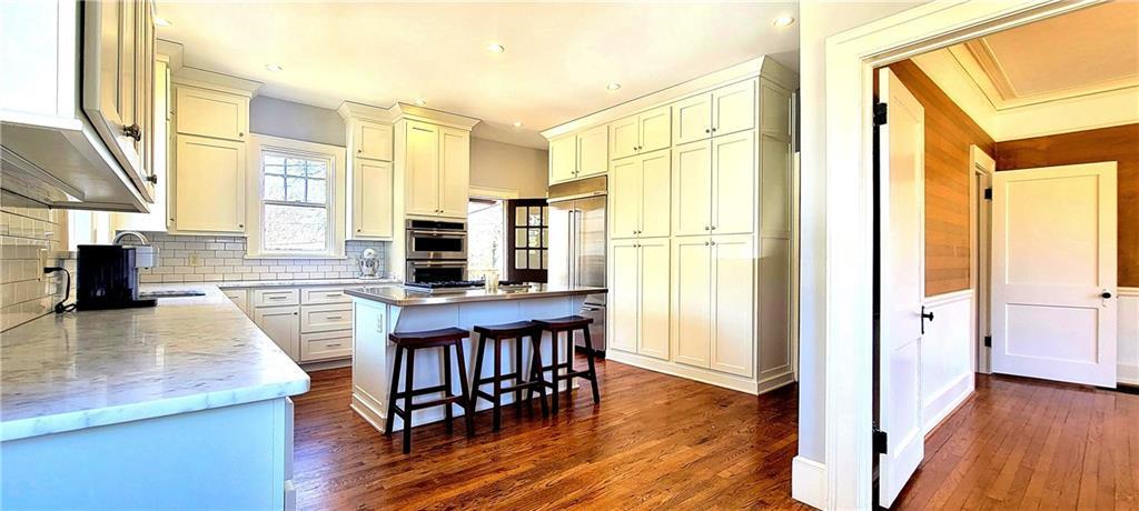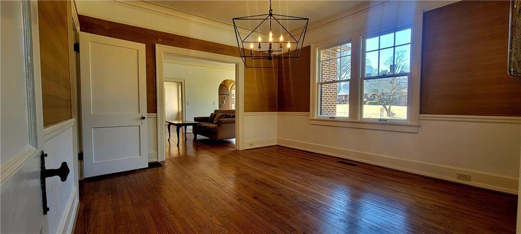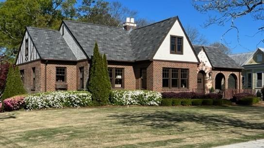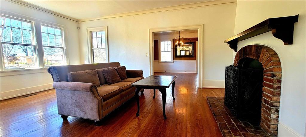 Description: Be a part of history! This Tudor home, known as the Thomas House, has been part of the community since 1929. Hard to beat the gorgeous arches and steeply pitched roofs. The main level of this 4-bedroom, 3.5 bath home has a large formal dining room, den with fireplace, formal living room and 3 bedrooms with 2 baths. The finished basement has the 4th bedroom, 1.5 baths, den, bonus room, and laundry room. Many have stated adding a kitchen in the bonus area would be great for an extended family area as it has its own exterior entrance from a covered patio and the parking area. The kitchen has been completely updated with a built-in refrigerator, microwave/wall oven combo with warming drawer, 36" 6-burner gas cooktop, dishwasher, undercounter ice maker, and wet bar, perfect for the chef and/or entertainer in you. Hardwood flooring throughout the main level except in the bathrooms which feature tile. The basement has polished concrete flooring in all rooms. There is a whole house water filter system also. The front porch is perfect for morning coffee, afternoon tea, or to just sit back, relax, do some people watching, and enjoy the two TVs that are included with the sale. At one point there were old plans to finish the attic for additional living space. Just so much to offer in this beautifully appointed home. Text or call for your private showing.