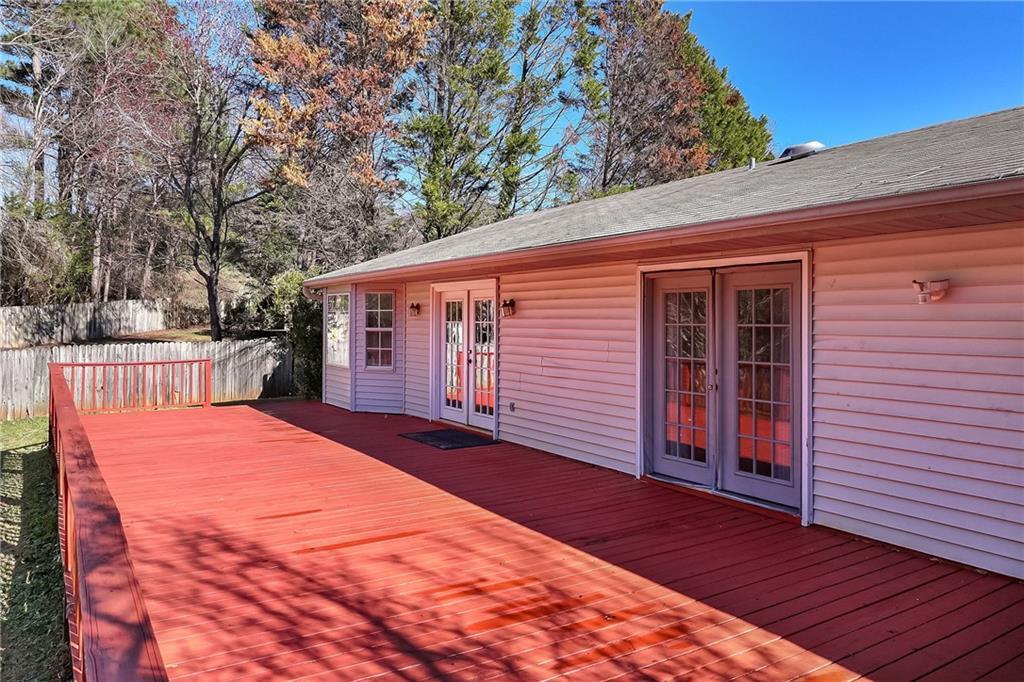 Description: Great investment, gameday home, or rental property. 783 Iroquois Circle is a single-family ranch-style residence in Auburn, Alabama, built in 1991. It features an open floor plan and is situated in an established neighborhood. The home has an open floor plan with all living spaces on one level. It includes a great room, a kitchen with a family combo, and a breakfast area featuring a bay window. The property has 3 bedrooms. The primary bedroom is notably large and includes a private door leading to the deck. A second bedroom also features a bay window. A very large deck extends from one end of the house to the other. The property includes a large backyard with a privacy fence and a separate storage building. Parking: The home includes a double carport for off-street parking. The property features central electric air conditioning and electric heating