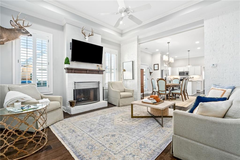 Description: Welcome home to this beautifully maintained, single-level brick residence nestled in a quiet, established neighborhood. From the moment you arrive, you’ll appreciate the inviting curb appeal, manicured lawn, and welcoming front porch—perfect for morning coffee or evening conversations. Inside, the home is filled with natural light and features an open, flowing layout designed for both everyday living and entertaining. The spacious living area offers neutral tones, tray ceilings, and a cozy fireplace, creating a warm and comfortable gathering space. The kitchen is bright and functional with white cabinetry, ample counter space, stainless steel appliances, and a center island that opens seamlessly to the main living areas. The split bedroom plan provides privacy and flexibility. The primary suite is generously sized with tray ceilings and an en-suite bath featuring dual vanities, a soaking tub, and a separate walk-in shower. Additional bedrooms are well-proportioned and ideal for family, guests, or a home office. Step outside to enjoy multiple outdoor living spaces, including a covered front porch and a private patio—perfect for grilling, relaxing, or entertaining. The driveway and rear access offer convenient parking and easy entry. With its thoughtful layout, move-in-ready condition, and charming outdoor spaces, this home offers comfort, style, and low-maintenance living in a desirable setting.