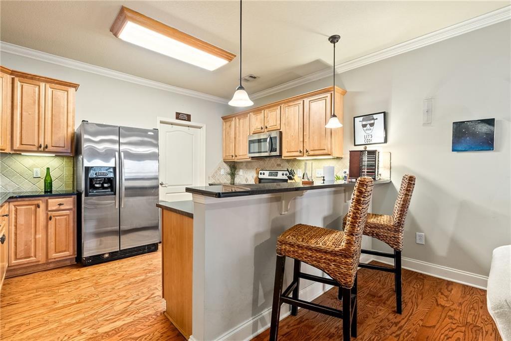 Description: Come see this Incredible, third floor, END UNIT! In Plainsview Condominiums. This Condo is in excellent condition and has wonderful hardwood floors throughout the kitchen and main living space. There are gorgeous black granite countertops in the kitchen with all stainless steel appliances. Both bedrooms are spacious and have nice walk-in closets. This one has a great space for entertaining friends with an oversized outdoor patio space highlighting its unique end-unit location. Newest update is a brand new AC installed in JUNE of 2025. Great location for GAMEDAY or Students!!