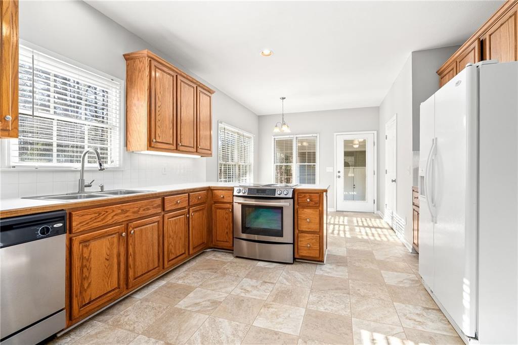 Description: Well-maintained 3 bedroom, 2.5 bath home located in the highly sought-after Grove Hill neighborhood. This inviting home features a large front porch perfect for relaxing and welcoming guests. Inside, you’ll find a spacious eat-in kitchen with ample cabinet space, along with a separate, generously sized dining room ideal for entertaining. The large family room offers a cozy fireplace and plenty of room to gather. The primary suite is conveniently located on the main level, providing comfort and privacy. Upstairs includes two additional bedrooms and a full bath with private vanity areas for each bedroom, great for family or guests. This home offers abundant attic storage throughout. Step outside to enjoy a private backyard, plus the convenience of a carport and additional outdoor storage. A wonderful opportunity to own a well-cared-for home in a desirable location. Home includes refrigerator and washer/dryer. Neighborhood includes clubhouse, 2 pools and playground.