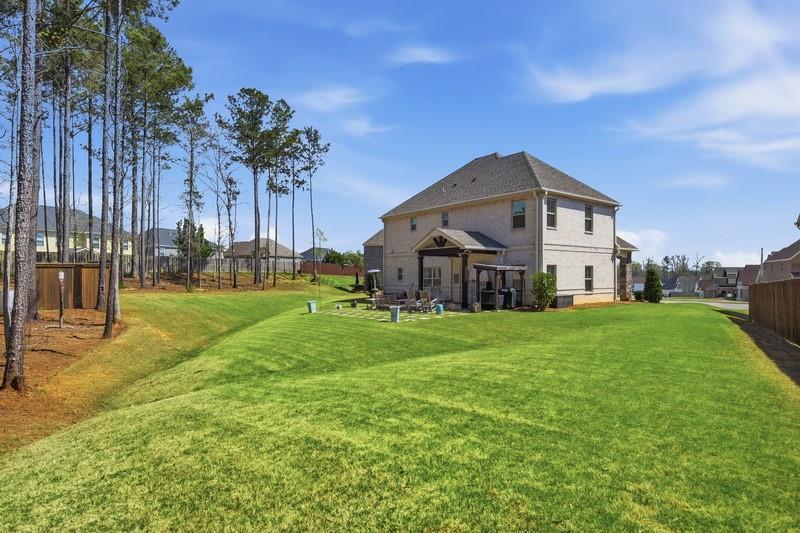 Description: Welcome to 1846 Waterfall Road an exceptional home offering space, comfort, and modern design in one of Auburn’s desirable communities. Built in 2021 and situated on the largest lot in the neighborhood at over half an acre flat lot, this property provides both privacy and room to enjoy. Step inside through the foyer into a stunning great room featuring elegant hardwood flooring and a beautiful fireplace, creating a warm and inviting centerpiece for the home. The thoughtfully designed open floor plan flows seamlessly into the breakfast area and a spacious gourmet kitchen complete with quartz countertops, a large island, and a walk-in pantry perfect for everyday living and entertaining alike. A formal dining room adds a touch of sophistication for hosting, while a generously sized bedroom with a full shared bath on the main level offers flexibility for guests or a home office. Upstairs, retreat to a private second-floor haven featuring four additional bedrooms, all with large walk-in closets, and two full bathrooms. The expansive primary suite is a true standout, offering a sitting area, 9-foot tray ceilings, and a spa-like bath with a garden tub, separate shower, double vanity, and abundant storage. With over 3,400 square feet, five spacious bedrooms, and enhanced outdoor living, this home is designed to fit a variety of lifestyles. Recent upgrades totaling over $28,000 include a custom patio grid, barbeque cabana, LeafGuard gutters, outdoor ceiling fan, dedicated freezer circuit, work shed, and added privacy features. Combining modern finishes, functional space, and a prime lot, this home is a rare opportunity you won’t want to miss.
