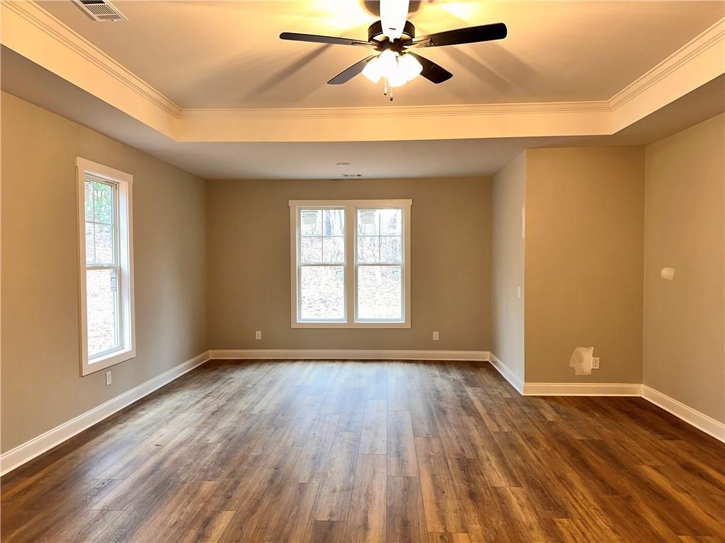 Description: Beautiful new construction located just around the corner from Lake Harding! Situated on 1.7 acres and surrounded by lots of trees and beautifully maintained properties. Classic board and batten exterior with a large backyard and a great covered back porch with a corner fireplace. Inside, an open living floor plan and modern finishes throughout including luxury vinyl plank flooring, quartz countertops and matte black lighting & plumbing fixtures. The spacious great room is open to the kitchen which has a separate breakfast room, island, stainless steel appliances and pantry. Formal dining room with custom wainscoting and chandelier. Extended owner's suite with sitting area and the builder's most popular master bathroom featuring a large garden tub adjacent to a double tile shower and separate closets! One-level living in an all-electric home. Easy access to public boat ramps & marinas. Great opportunity to own this beautiful new home just in time for lake season! Plans & specs subject to change at builder's discretion without notice.