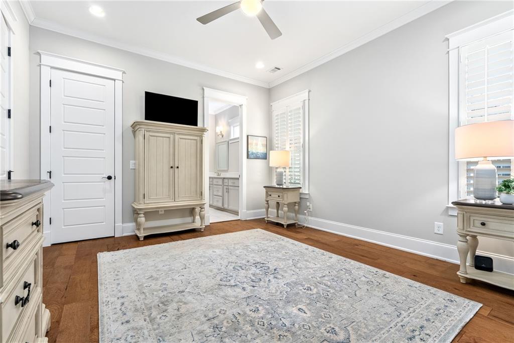 Description: Welcome to this beautiful, craftsman-style home in National Village! At first glance you'll notice the covered front porch, then as you walk inside, you'll be blown away by all the gorgeous features and upgrades! The living room greets you with 10' ceilings, wood floors, and a gas fireplace surrounded by beautiful built-ins! Open to the kitchen and dining area, this is a wonderful and cozy place for gathering! The kitchen is equipped with stainless steel appliances, quartz countertops, and custom cabinets that go all the way to the ceiling! Off the kitchen is the primary bedroom, with a gorgeous en suite bathroom, creating a perfect haven for any owner! Back at the front of the home, you'll find the secondary bedrooms and another full bath. Outside offers a screened-in porch, professionally landscaped yard, double carport, and utility closet. Don't miss out on this well-maintained home in a great neighborhood boasting great amenities, including: lawn maintenance, garbage collection, access to the Marriott's 3 pools, exercise room, dry saunas, tennis courts & pickleball courts, complimentary play on the short course and unlimited range balls at Grand National Robert Trent Jones Golf Trail, access to the spa and dry saunas, discounted guest rooms and food. Schedule a tour today!