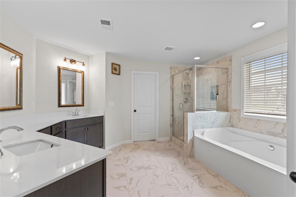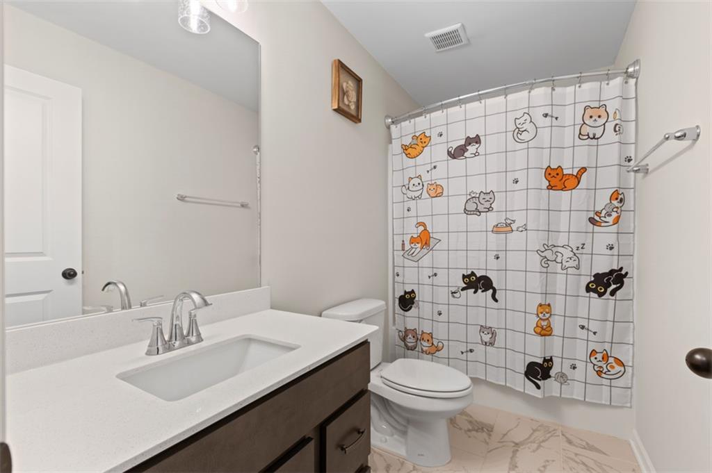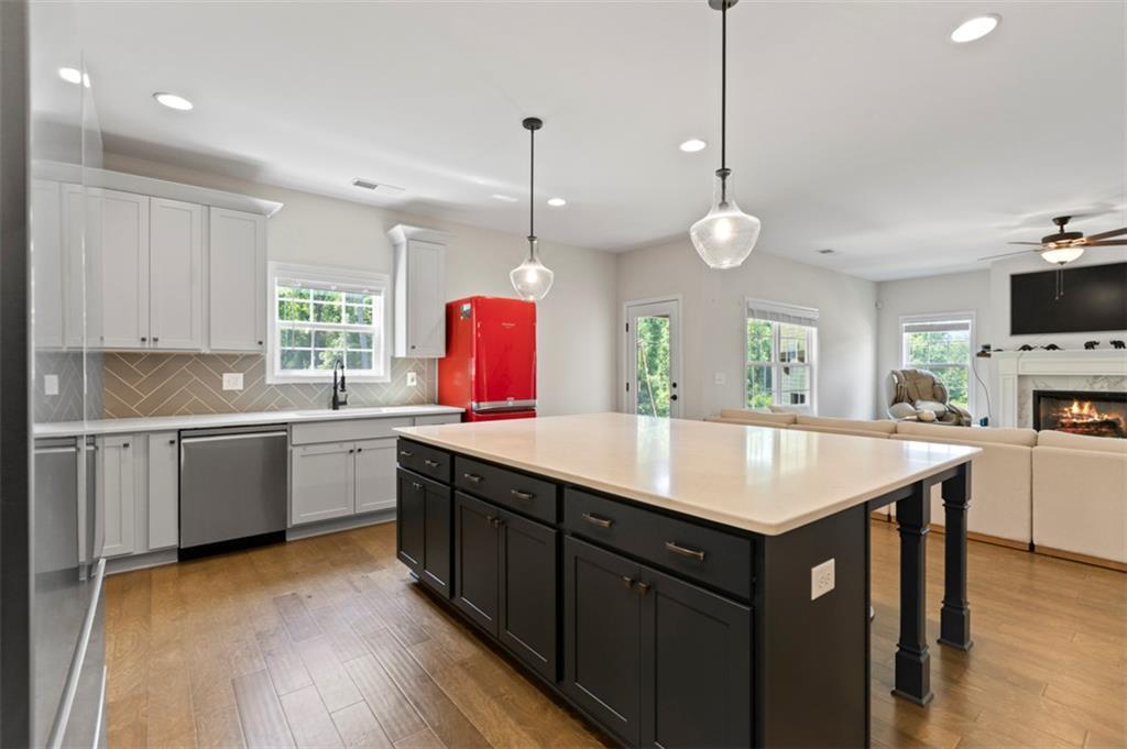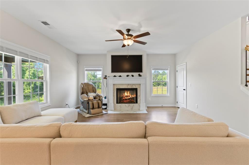 Description: Better than new and thoughtfully upgraded, this beautifully appointed home offers exceptional space, refined finishes, and everyday functionality in a sought-after Auburn neighborhood. A welcoming entry foyer sets the tone for the home’s scale and craftsmanship, with an open, comfortable flow into the main living areas. The spacious great room features a gas fireplace and connects seamlessly to a standout gourmet kitchen with built-in stainless appliances, gas cooktop, abundant quality cabinetry, granite countertops, tile backsplash, and a dramatic vented hood. The seller-enhanced extra-large island creates the perfect hub for entertaining and daily life, while the 3-tier dishwasher adds premium convenience. One of the most notable upgrades is hardwood flooring throughout the entire home, delivering a cohesive, elevated look from room to room. A stairwell window adds architectural character and fills the interior with natural light. Designed for flexibility, the main level includes a full bedroom and full bath—ideal for guests, multi-generational living, or a private home office. Upstairs are 3 generously sized bedrooms with ample closets. The owner’s suite offers generous proportions and natural light, plus a spa-inspired bath featuring a tile shower, garden tub, expansive quartz-topped vanity, and a huge walk-in closet that comes with a window. Outdoor living shines with two covered porches: a welcoming covered front porch, and a covered Game-day Patio with fireplace—perfect for gatherings, game days, and year-round enjoyment. Additional highlights include spray foam insulation, a gas tankless water heater, and smart home options. Schedule your private showing and experience the upgrades, scale, and comfort this home delivers.