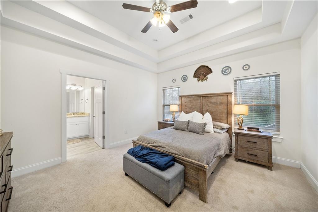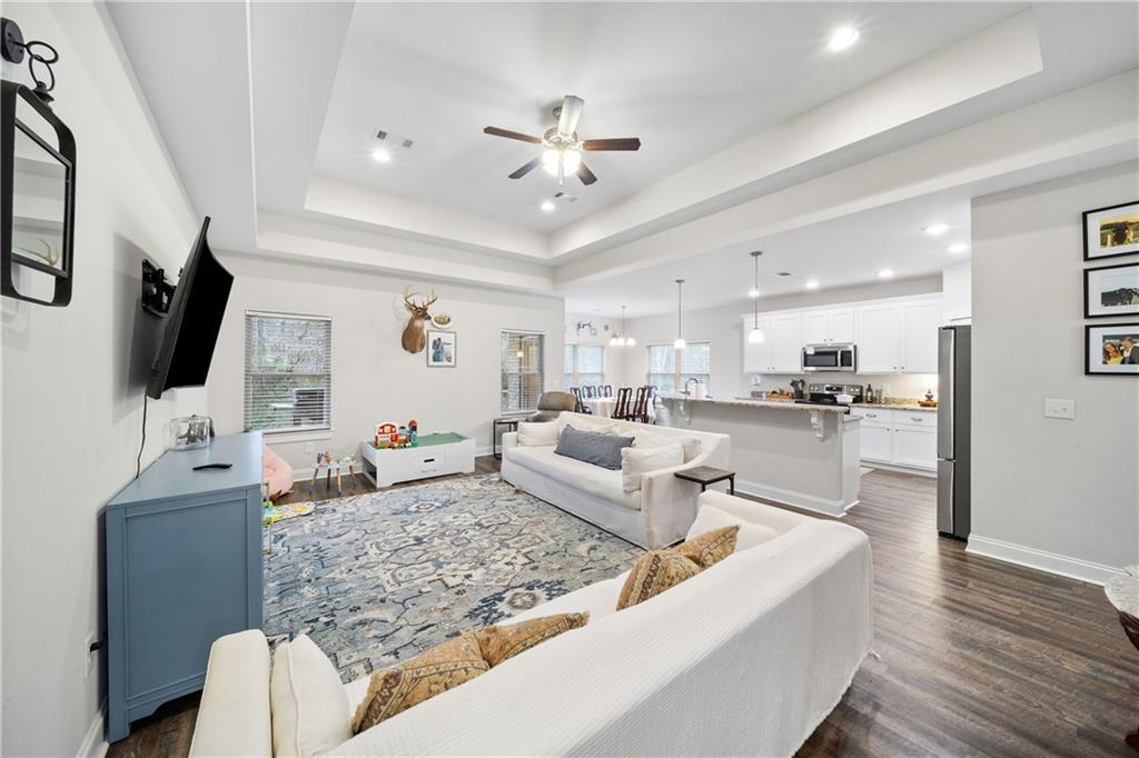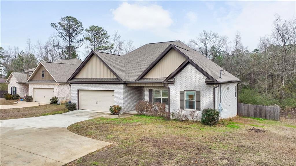 Description: If you’ve been waiting for a move-in ready home that just feels right, this freshly painted 3 bedroom, 2 bathroom one is it. The home features a functional, open-concept layout with recessed lighting and a tray ceiling for added depth and character. The kitchen includes granite countertops, stainless steel appliances, white cabinetry, a center island with bar seating, and ample storage. The primary suite features a tray ceiling and a private en-suite bath with dual vanities, soaking tub, separate shower, and walk-in closet. Two additional bedrooms offer flexibility for guests, office, or nursery. Enjoy the covered back porch overlooking a fully fenced backyard. Additional highlights include a two-car garage and a convenient Lee County location with easy access to Auburn and Opelika.
