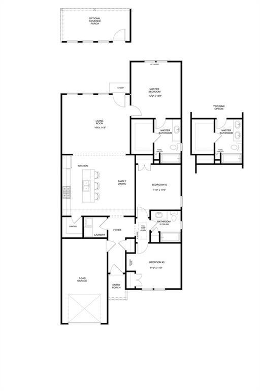 Description: Presale with 6 month build timeframe! The Toby B is a beautiful 3 bedroom, 2 bathroom, 1391 square foot home with a front entry single car garage. The entry way opens up into a foyer that leads on one side to the two guest bedrooms with a shared full bathroom, and on the other side into the open concept kitchen, living, and dining areas. The kitchen features a large island with plenty of cabinet space. Just off of the kitchen is the laundry room, which leads into the front entry garage. The kitchen flows into the living area that features floor to ceiling windows and access to the backyard. The primary suite sits at the back of the home and features a private en-suite with a large walk in closet and private tub/shower with a single vanity.