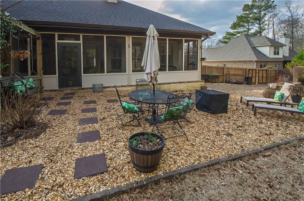 Description: Welcome to this quaint and charming home in the greatly desired Camden Ridge S/D! This 1,949-square-foot European-inspired home features a stunning mortar-washed exterior and timeless architectural charm. As you step inside, brick flooring in foyer continues the inspiration of European design. The thoughtful split plan three-bedroom layout offers warm and inviting living spaces, including a cozy den with a wood-burning fireplace—perfect for relaxing evenings. open to the living area, a well planned kitchen provides storage and accessibility. A custom designed open pantry keeps all of your baking needs within reach! an elegant half bath, located just off the kitchen provides convenience for your guests! Large transom windows with plantation shutters fill the dining room with natural sunlight, creating an airy and welcoming atmosphere. The primary suite is a true retreat with shiplap accent wall in the bedroom and bath to create an ambiance of coziness. the primary bath is complete with a classic clawfoot tub, a separate shower and huge walk-in closet with custom cabinetry. Step outside to enjoy the screened-in back porch, accessible through the primary bedroom or breakfast room, and overlooking a pristine backyard recently landscaped with raised garden beds and pebbled stone walkways, or sit in the outdoor swing under the garden arbor for an ideal morning coffee or a peaceful evening outdoors while overlooking an original Toomers Oak planted in the backyard! This home blends character, comfort, and style in every detail. home has wiring for a generator available for those emergencies that may arise! Roof replaced in 2021, privacy fence replaced 2023, ADT hookups available;