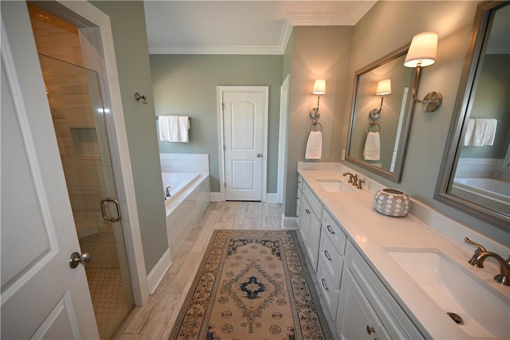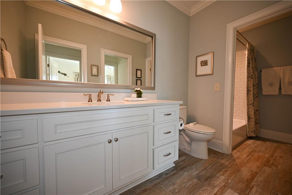 Description: Elegant & beautifully finished! 3 bedrooms & 3 bathrooms on the main level with a 4th large bedroom + a full bathroom on the second level. No carpet throughout the main level! Split floorplan with a separate primary suite complete with a zero entry tiled shower, frameless glass shower door, oversized soaking tub, double sink vanity, water closet & walk-in closet with custom structured shelving. Bedrooms 2 & 3 on the main level have direct access to bathrooms, both featuring tubs with tile surrounds & extended vanities. Lovely kitchen with custom cabinetry to the ceiling, quartz countertops & a large center island. Kitchen also boasts under-cabinet lighting, tiled backsplash, soft close drawers, a bright breakfast area & walk-in pantry! Refrigerator, dishwasher & microwave recently have been replaced. Gorgeous great room with newly added built-ins flanking either side of the gas log fireplace. The coffered ceilings in the great room also to add to the cozy ambiance of this living space. Off the kitchen is a hall tree drop zone complete with hooks & cubbies to keep everything organized entering the home from the garage! Fantastic laundry complete with an undermounted sink, a ton of cabinets & a picture window providing lots of natural light. Nice-sized covered back porch is wired for a tv & overlooks the private fenced back yard. Energy saving features include spray foam insulation, tankless hot water heater, sound-proofing windows in the primary suite and front bedroom. Extra features include upgraded interior lighting, newly installed landscape lighting, fully fenced back yard, gutters, irrigation & freshly painted interiors. Around the corner from the East Lake neighborhood pool with sidewalks all the way! Home does come with a transferable membership to the East Lake pool. Enjoy easy access to Publix, I-85, Tiger Town, Auburn University, dining & shopping! Pristine & move-in ready!