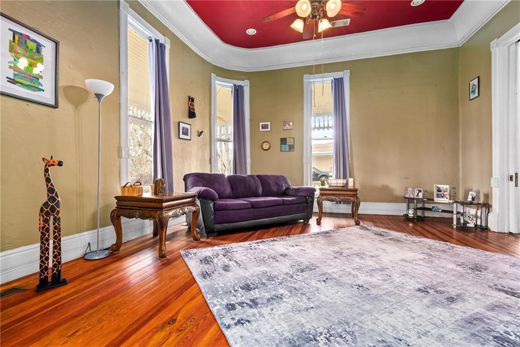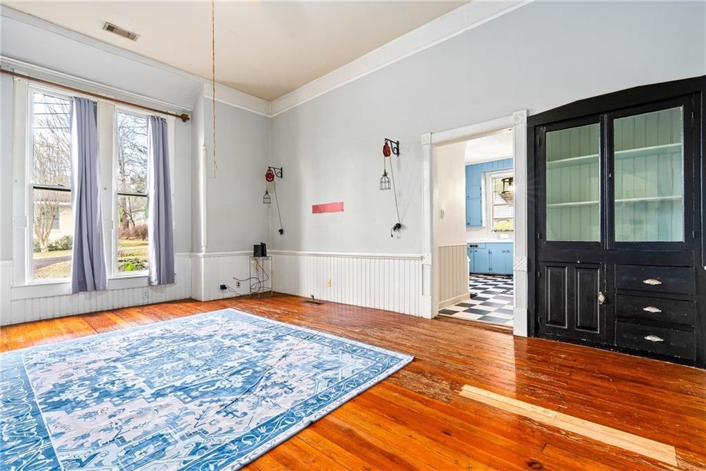Description: This charming one-story circa-1900 home offers remarkable character, scale, and craftsmanship rarely found today. A fabulous covered front porch invites you to relax and enjoy the timeless appeal of the home before stepping inside. From the moment you enter, soaring ceilings and a beautifully wide foyer/hallway create an immediate sense of openness and architectural presence. Incredible floor-to-ceiling windows flood the home with natural light, highlighting original details and hardwood floors while enhancing the airy, welcoming feel throughout. The living room is both gracious and inviting, ideal for everyday living or entertaining, while the generously sized kitchen provides exceptional space for cooking, gathering, and hosting. A fabulous mudroom adds everyday functionality and storage that is seldom found in homes of this era. The thoughtfully designed floor plan includes three bedrooms, with one space offering excellent flexibility and the option to function as a dining room, home office, or versatile flex space. Updated bathrooms blend timeless style with modern comfort, all conveniently arranged on a single level. Outside, the fenced-in backyard offers a private retreat, framed by stunning mature trees that provide shade, beauty, and a peaceful setting for relaxing or entertaining. Conveniently located in close proximity to downtown Dadeville and local schools, this home seamlessly combines historic charm, impressive interior scale, abundant natural light, and single-level living.