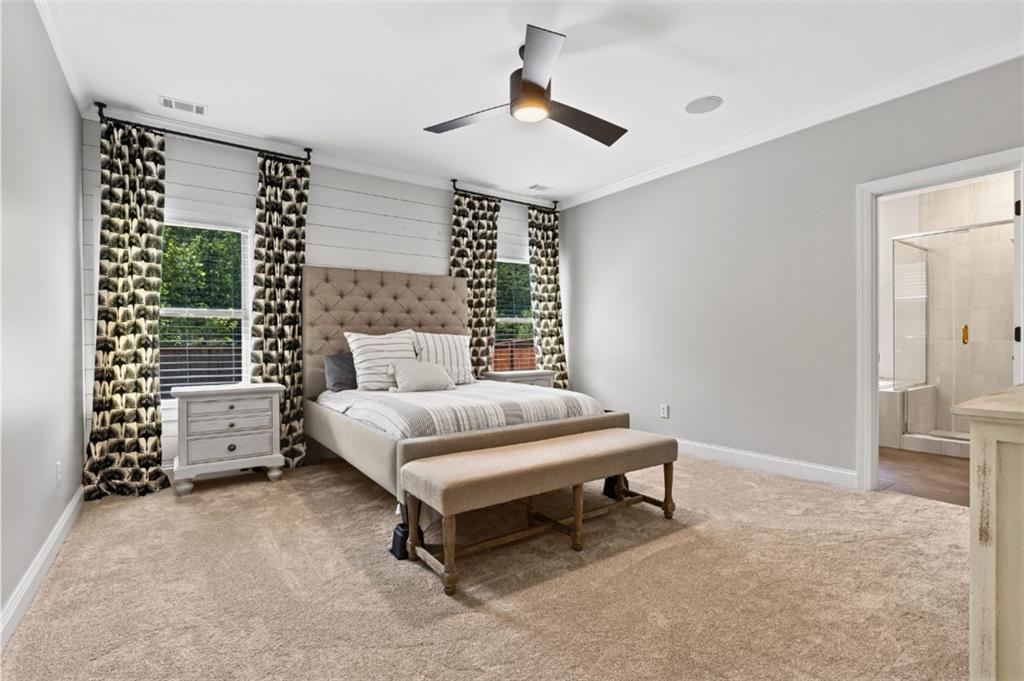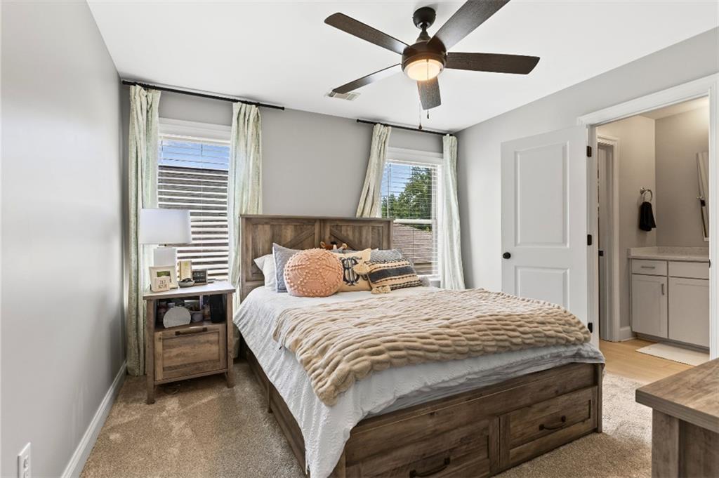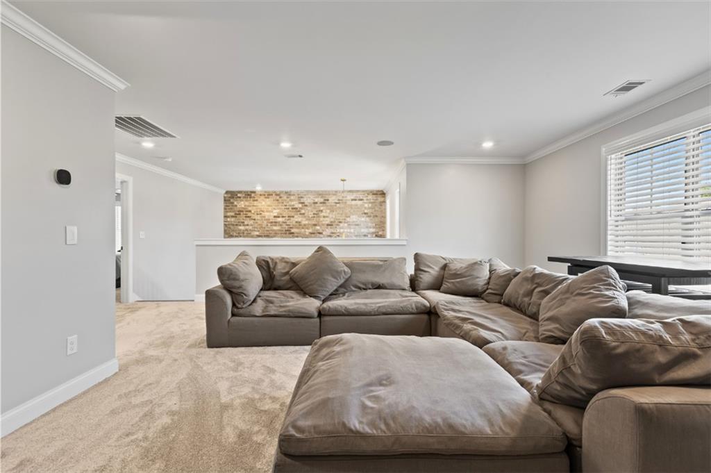 Description: This beautiful, like new furnished home in Woodward Oaks was once the model home and has tons of upgrades and one of the most thoughtfully designed floor plans you'll find anywhere. The stunning two story foyer with brick accent wall makes a powerful visual impact when you enter the front door. The main level has all the usual common spaces, plus the primary bedroom and a secondary bedroom and bath. Flex spaces include a main level study and a spacious loft upstairs. The detached two car garage is connected to the home by the covered back porch and features slat panel walls for convenient storage of all your home and garden maintenance tools and a mini-split heat and air unit that could be used to make it a comfortable game day or gym space. The back yard is large, flat and fully fenced. All the carpet is brand new and the walls have been freshly painted. It's fully and attractively furnished and accessorized with drapes, faux wood blinds, washer, dryer, refrigerator and televisions - literally ready to move right in.