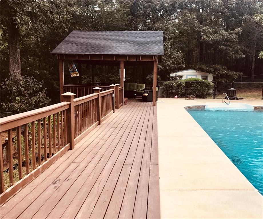 Description: Discover peaceful country living just minutes from Lake Harding on just under 8 wooded acres. This expansive home blends indoor/outdoor entertaining with an in-ground pool, cabana, hot tub area and deck — perfect for summer gatherings. The grounds include large front and back fenced yards, a double covered carport plus an additional parking pad. Inside, an open floor plan centers on a vaulted-ceiling great room with a brick fireplace and an upstairs open loft/office overlooking the space. The eat-in kitchen features stainless steel appliances, a raised bar, a large pantry cabinet and flows to a formal dining room. A very spacious foyer welcomes guests, and a separate laundry room adds convenience. Downstairs (or main level) living extends to a huge game room with extra storage — ideal for media, play or hobby space. Thoughtful design, generous storage and private acreage combine to create a rare offering near the lake. Schedule your showing today and imagine the lifestyle this property provides.
