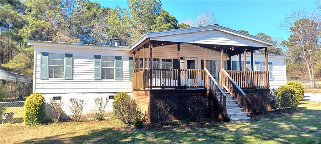 Description: Don’t miss this beautiful 1,512± sq. ft. home situated on 0.71± acres. Enjoy relaxing on the covered front porch offering approximately 264± sq. ft., perfect for grilling or unwinding on a porch swing. The den features a vaulted ceiling and wood-burning fireplace and is open to the kitchen and breakfast area, creating a warm and inviting living space. The den, kitchen, breakfast room, and laundry room all feature durable LVP flooring. The kitchen is open to the den and includes an island, refrigerator, dishwasher, and ample cabinet and counter space. Just off the kitchen is a spacious laundry room with room for a deep freezer. The primary bedroom easily accommodates a king-size bed and features custom trim and a ceiling fan. The primary bathroom offers a large garden tub, separate shower, dual vanity sinks, and a large closet. Both additional bedrooms include closets and custom trim, with one featuring a ceiling fan. Step outside to the large rear wood deck overlooking the backyard — perfect for entertaining or enjoying peaceful outdoor living.