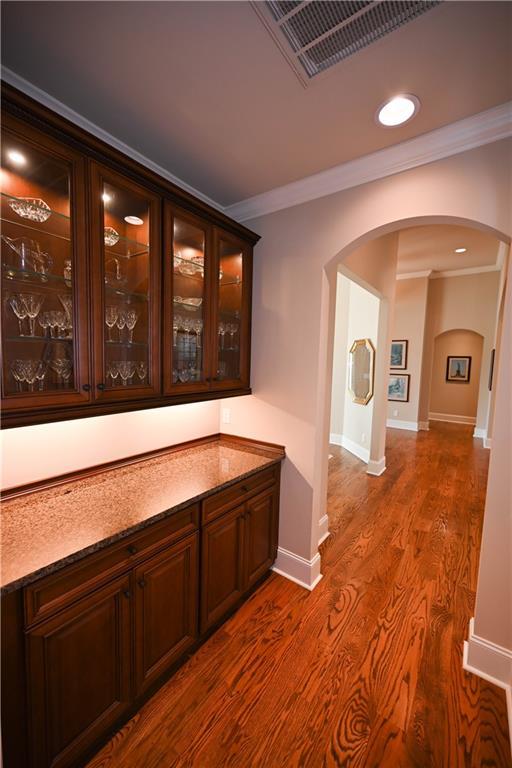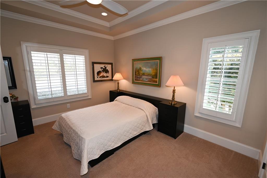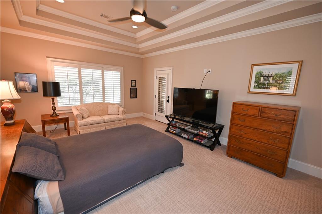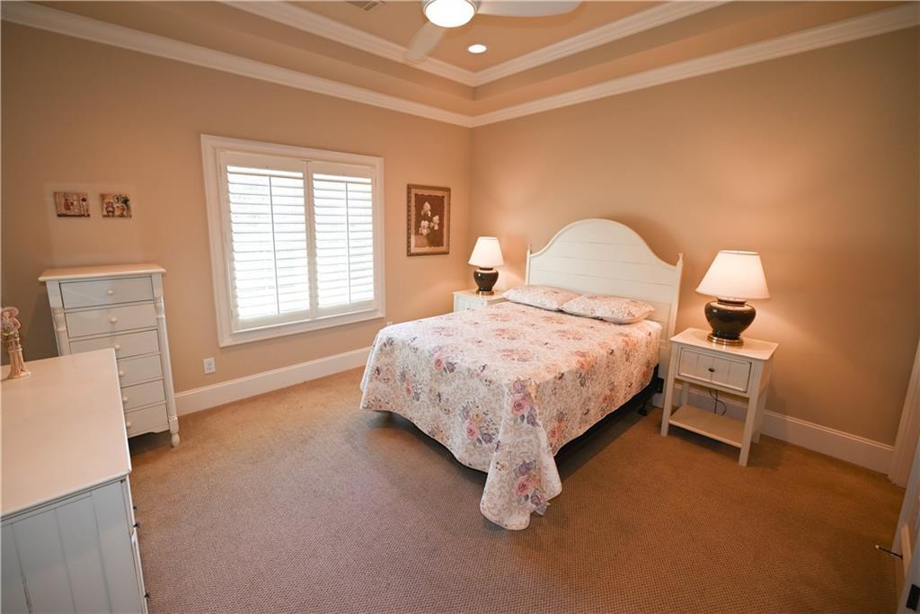 Description: *RARE one-level custom home in Moores Mill Golf Club!* Built by Richard Compton, this executive residence offers a highly sought-after single-story layout on a nearly one-acre lot in one of Auburn’s most prestigious neighborhoods. A stately brick façade, arched entry, & mature landscaping set the tone as you step into a welcoming foyer flanked by a study (w/ closet, ideal as a 5th BR) & formal dining room. The heart of the home opens into a light-filled great room w/ soaring coffered ceiling, wall of windows, & custom built-ins framing the gas fireplace. Great room flows seamlessly into the kitchen & window-surrounded breakfast area for effortless everyday living & entertaining. Chef's kitchen features tons of custom cabinetry w/ underlighting, large center island, beverage fridge, & a true butler’s pantry w/ lighted display cabinetry. A split floorplan provides exceptional privacy, w/ the primary suite tucked quietly away & featuring a tray ceiling, direct access to the back porch, & a spa-like bath w/ oversized tile/glass shower, hydrotherapy soaking tub, dual sinks, & TWO generous walk-in closets! Three additional bedrooms include a private guest suite plus two bedrooms connected by a Jack & Jill bath, along w/ a convenient half bath. Outdoor living is outstanding! A very private enclosed back porch w/ flagstone flooring includes a gas fireplace, gas grill line, & integrated TV wiring, creating a year-round retreat. An adjacent open flagstone patio overlooks the expansive backyard that’s partially wooded, partially grassy, & wonderfully secluded. Additional highlights include a fabulous laundry room w/ built-in desk, extra storage, & sink; a 3-car side-entry garage with epoxy floors & insulated doors; an enormous heated/cooled room over the garage ideal for a gym or flex space; plantation shutters throughout; tray ceilings in all bedrooms; whole house vacuum, & a new roof. One-level luxury in Moores Mill, minutes from Auburn Univ, I-85, & so much more!