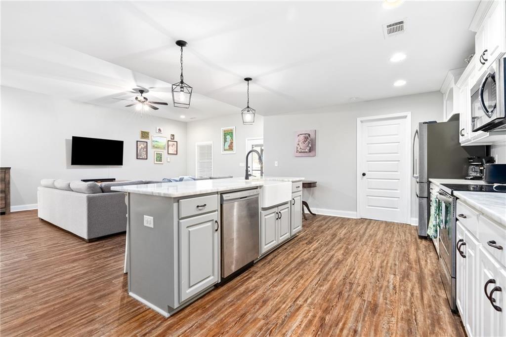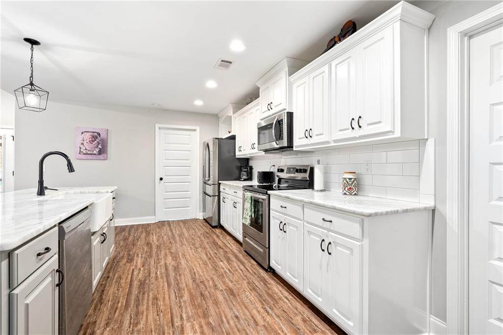 Description: Welcome to 1407 Lowndes Street! A beautifully designed 4 bedroom, 2 bathroom home offering comfortable living in a quiet, conveniently located Auburn neighborhood. Step inside to an open-concept living space highlighted by tall ceilings and abundant natural light, creating an airy and inviting atmosphere perfect for both everyday living and entertaining. The stunning kitchen serves as the heart of the home, featuring marble countertops, generous prep space, and ample cabinetry — ideal for home chefs and gatherings alike. The spacious primary suite offers a relaxing retreat with dual vanities and a well-appointed en suite bath. Three additional bedrooms provide flexibility for guests, a home office, or growing households. Out back, enjoy an extended porch with a partially screened-in area overlooking the fantastic backyard — perfect for morning coffee, game day evenings, or outdoor entertaining. A detached storage shed adds valuable extra space for tools, hobbies, or seasonal storage. Tucked on a quiet street yet centrally located, this home offers quick access to both Auburn and Opelika shopping, dining, schools, and everyday conveniences.