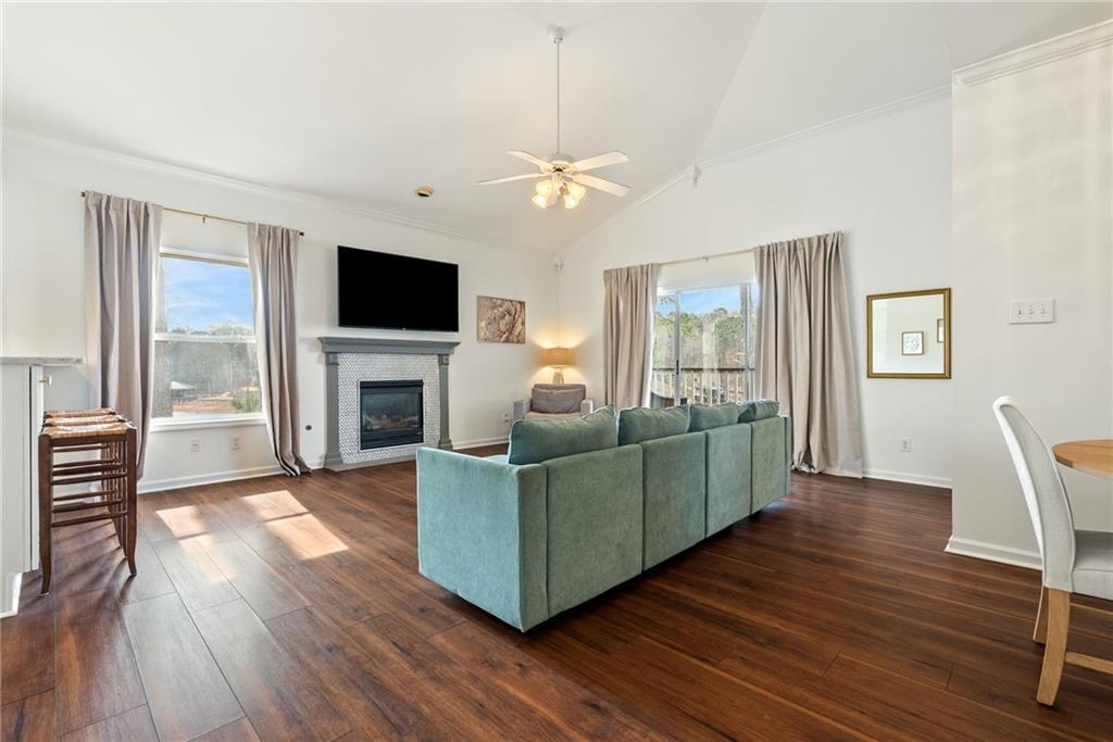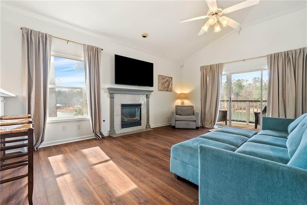 Description: Short term rentals allowed!!! Top Floor 2-bedroom, 2-bath condo at Lake Martin with incredible view. This inviting space features high vaulted ceilings and a charming gas fireplace, creating a warm and cozy atmosphere. The recent updates include new paint throughout, new window drapes, and new dining room table, combining elegance with easy maintenance. Both bedrooms are generously sized and offer stunning lake views, providing a peaceful retreat where you can wake up to serene water views every morning. The open floor plan ensures plenty of natural light flows through the condo, enhancing the spacious and airy feel. Whether you're enjoying a quiet evening by the fireplace, entertaining guests, or simply taking in the breathtaking lake scenery from your bedroom, this condo offers a perfect blend of comfort and style. Experience the best of lake living in this charming and well-appointed home. Spacious Boat dock with 8-boat parking spots! Unit Comes Fully Furnished!