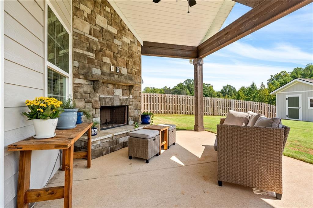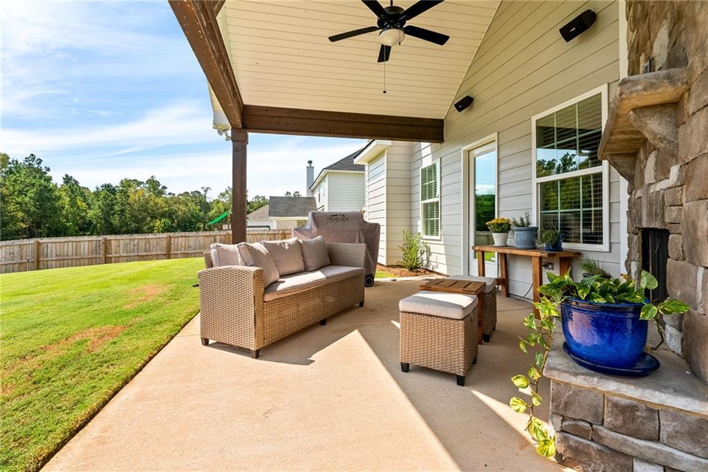 Description: Conveniently located in Opelika and just minutes from I-85, this home offers the perfect combination of style, space, and accessibility. From the moment you arrive, you’ll love the charming curb appeal, welcoming front porch, mature landscaping that enhances the beauty of the front yard. Inside, the bright open floor plan is filled with natural light and features gorgeous flooring and modern finishes throughout. The kitchen is a true standout with crisp white cabinetry, granite countertops, stainless steel appliances, a spacious island perfect for gathering, and the refrigerator will remain with the home. It flows seamlessly into the dining area and inviting living room with a cozy fireplace and views of the backyard—ideal for entertaining or everyday living. The home is also equipped with a reverse osmosis water filtration system, providing clean, purified drinking water right from the tap. Upstairs, you’ll find a spacious primary suite offering a relaxing retreat with a spa-like bath featuring dual vanities, a tiled walk-in shower, soaking tub, and generous closet space. The additional bedrooms are well-sized, and the convenient upstairs laundry room makes daily living easy and efficient. The true two-car garage offers excellent functionality, including a dedicated nook perfect for a deep freeze or additional storage. Outside, the fenced backyard includes a detached storage building with plug-in power—ideal for hobbies, tools, or extra storage space. There is also a third-car paved parking pad, giving you additional parking flexibility for guests or extra vehicles. Enjoy the covered back patio complete with a stunning stone fireplace—perfect for game days, cool evenings, or hosting friends. For added security and convenience, the home includes security cameras. With stylish finishes, thoughtful upgrades, functional space, and an unbeatable location close to I-85, shopping, dining, and Auburn University, this Opelika home truly checks every box.