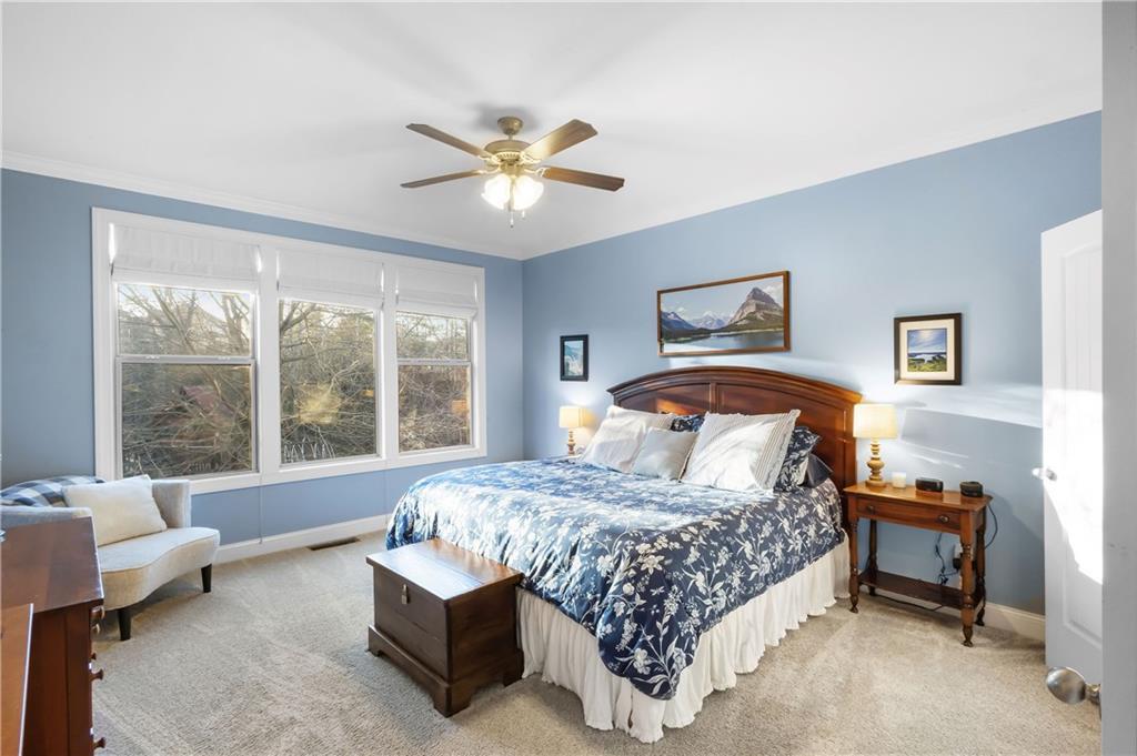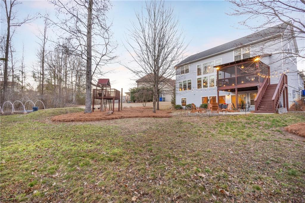 Description: Stunning finished walkout basement home on a private, wooded cul-de-sac lot backing to a peaceful creek. The outdoor living space is exceptional, featuring a screened deck on the main level, flagstone fire pit area, and hot tub that remains with the home. A wall of windows fills the great room with natural light and highlights the soaring 17-foot ceilings, creating an open and inviting atmosphere. The thoughtfully designed floor plan offers abundant space for everyday living and entertaining. The main level flows beautifully, while the upper level features a loft with built-ins, three additional bedrooms, and two full bathrooms, providing an ideal retreat for family or guests. The finished basement expands the living space with a large den/rec room, two bedrooms, and a full bath. One bedroom includes double French doors, making it perfect for a home office, hobby room, or craft space. Heated and cooled storage areas eliminate the need for off-site storage. The basement layout is well suited for a mother-in-law suite or extended family living. This customized home offers exceptional functionality, privacy, and room to grow without ever feeling crowded. Meticulously maintained and surrounded by natural beauty, this property delivers both space and versatility in a highly desirable setting. (professional photos to come soon)
