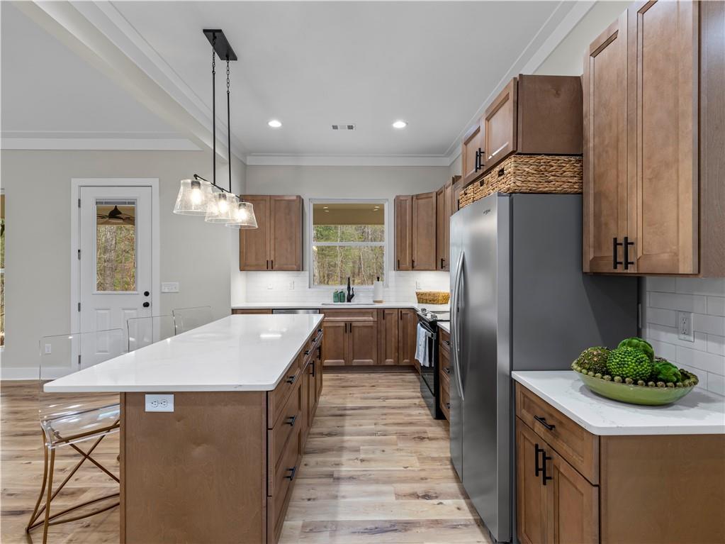 Description: Refined Living in StillWaters Now complete and ready to welcome its first owners, this beautifully crafted home in StillWaters offers an effortless blend of comfort, elegance, and privacy. Spanning approximately 1,700 square feet, this thoughtfully designed 3-bedroom, 2.5-bath residence with a two-car garage invites you into a light-filled, open layout designed for both relaxed living and stylish entertaining. The foyer entry flows seamlessly into a sophisticated dining space and a stunning vaulted living room, creating an airy yet intimate atmosphere. The kitchen is generously sized and beautifully appointed, featuring a walk-in pantry and ample workspace — ideal for gatherings or quiet evenings at home. Step outside to the covered back porch, where you can unwind and take in peaceful surroundings and glowing sunset skies a true extension of the living space. The split-bedroom design ensures privacy and comfort: " Two well-appointed guest bedrooms with a shared bath " A serene primary suite retreat offering double vanities, a beautifully tiled shower, and a spacious walk-in closet A large laundry room with abundant cabinetry adds functionality without sacrificing style, and the conveniently placed half bath near the garage entry is a thoughtful finishing touch. This move-in ready residence offers the rare opportunity to enjoy new construction within the security and amenities of StillWaters all in a setting that feels private, peaceful, and refined.