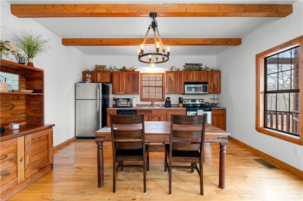 Description: Rustic lake cabin retreat located just north of Co. Rd. 82 on the Big Tallapoosa River. This spacious getaway offers 3 bedrooms and 2 full baths and sleeps 10 comfortably, making it an ideal vacation home or income-producing rental. The main level features two bedrooms, a full bath, and a second living area that is perfect for kids or guests, along with access to a covered patio. Upstairs, you will find the primary suite with a private bath, plus an open-concept kitchen and family room showcasing exposed beams and plenty of space for everyone to gather. The kitchen is upgraded with stainless steel appliances. Step out onto the covered deck and enjoy peaceful mornings and sunsets with beautiful lake views surrounded by nature. You are only a few steps from the water with year-round lake access, including a floating dock with jet ski port. Although this is an off-water lot, the view and access make it feel like true waterfront living. A cement golf cart path leads directly to the dock for easy access. An additional lot is included with the property. Recent updates include a new metal roof and fresh interior and exterior paint. This is the lake cabin you have been waiting for, perfect for weekends, summers, or rental income opportunities. *Property includes 2 parcels