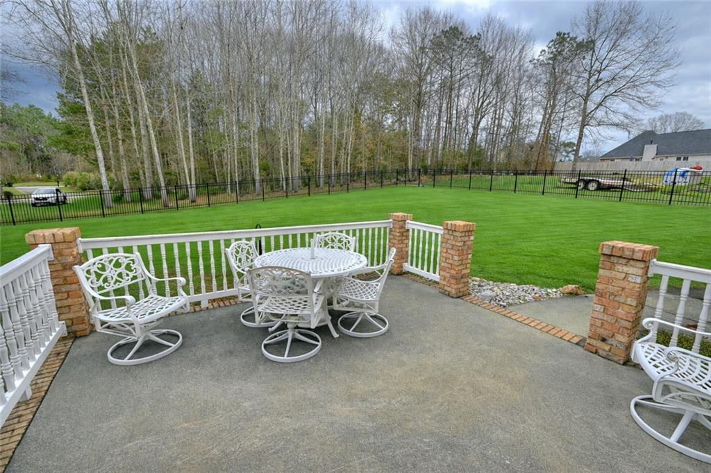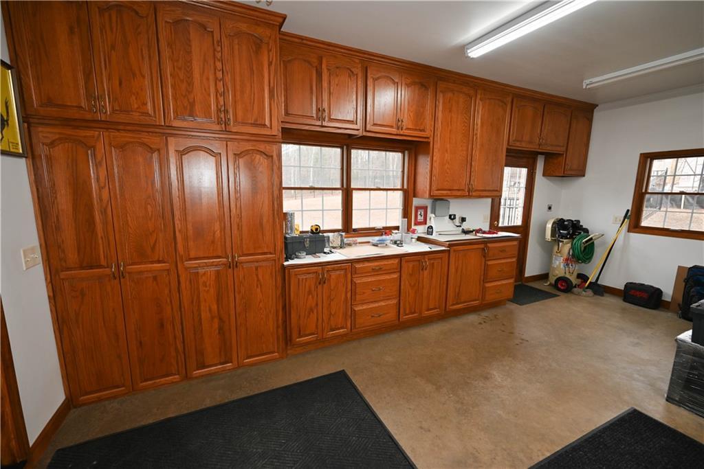 Description: SOLID build by Randy Simpson! NEW Roof & pristine encapsulated crawl space. New gutters. TWO TRANE HVAC units. FOUR garage bays **two of which are heated & cooled** along with a workshop area complete with a wall of custom Van Nostrand cabinetry & a workbench perfect to keep all of your projects organized. 8' tall INSULATED garage doors. PELLA windows throughout. SOLID core interior doors throughout. Tankless water heater. Interior walls are insulated for sound. SEPARATE irrigation meter to water the almost half acre yard! Full brick exterior for easy maintenance! Wrought iron fence for easy maintenance. Concrete patio for NO maintenance! Fence includes a double gate & two single gates. A SECOND kitchen leads to the bonus room set up to be a home theater with surround sound speakers. Main kitchen includes a large walk in pantry, gas stove, stainless steel appliances (including a Bosch dishwasher, granite countertops, tiled backsplash & an 8' sliding door that opens to the patio. Van Nostrand cabinetry throughout. Living room boasts a wall of windows overlooking the back yard & a gas log fireplace with a stacked stone surround & hearth. Primary suite includes a large walk in closet, trey ceiling, crown molding, two linen closets, double sink vanity! Laundry has extra cabinets & a sink. This gem has been immaculately maintained & ready to make your own! Neighborhood pool & gazebo overlook the pond. Woodland Park has lovely large wooded lots that are so hard to find these days!