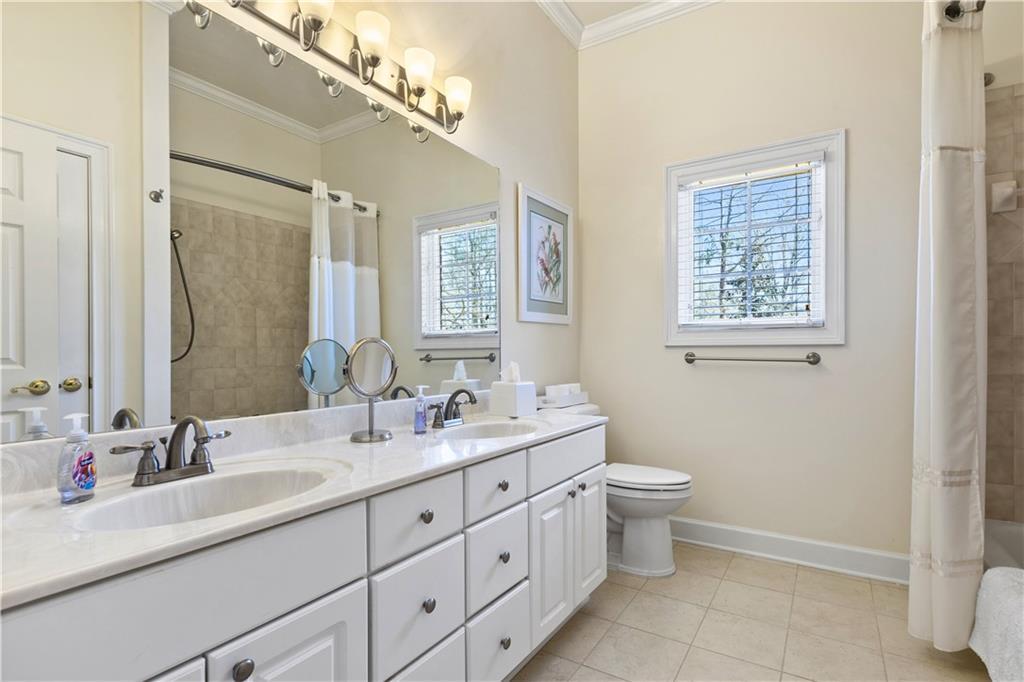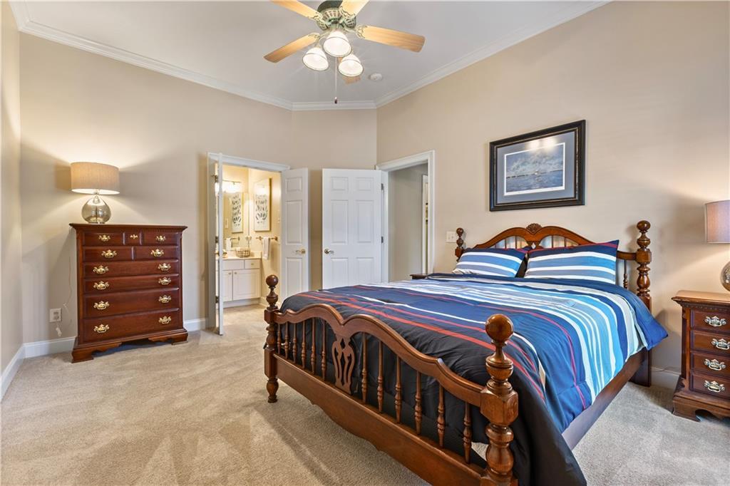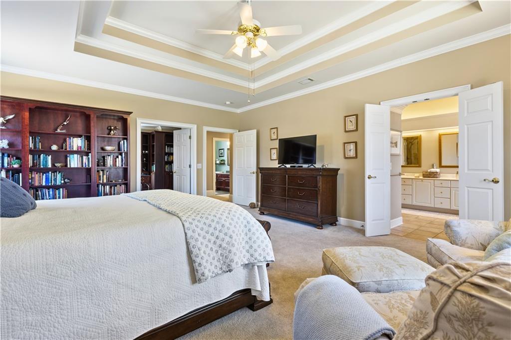 Description: Elegance is present in every aspect of this classic home tucked away in Grove Hill. The spacious main level is entered via a grand foyer that is open to the refined formal dining and living rooms that flow into the kitchen and breakfast area. The kitchen is equipped with a full suite of stainless steel appliances, including the main refrigerator/freezer, a beverage refrigerator and a brand new gas cooktop and double wall ovens. Also brand new is a backsplash update of stylish subway tile. When feeling less formal, you could enjoy dining at bar seating in the kitchen or in the breakfast area, but clearly your best option is just outside on the cozy back porch with its expansive view of the private lake. One wing of the main level hosts a tasteful powder room and the suite of primary rooms featuring a substantial bedroom, bath and closet, and a dignified study/library with fireplace. The wide, stately staircase to the lower level is also on this side of the home. The opposite wing holds a second smaller study, a laundry room so large you'll look forward to household chores, and access to the massive 3 car garage. Downstairs you'll essentially find a second home - large living room, kitchenette with pantry(only missing a stove), 4 bedrooms including a second primary suite, a mirrored home gym, a beautiful deck for enjoying peaceful lake views and wildlife and bird watching, and more storage than you can imagine. Where else can you find such a fine home on a 1.4 acre manicured lot with a private lake? In addition to an oversized 3-car garage, there is also a 20X15 ground level storage room accessed from outside, with concrete floor for convenient storage of lawn and garden equipment - could also house a golf cart. The adjoining lot is also for sale (left of the home). HVAC units new in 2013/2023/2024 and 2024. Roof 2017. Grove Hill amenities include ample green spaces, two swimming pools, a playground, a pond, a walking/bike trail and a clubhouse.