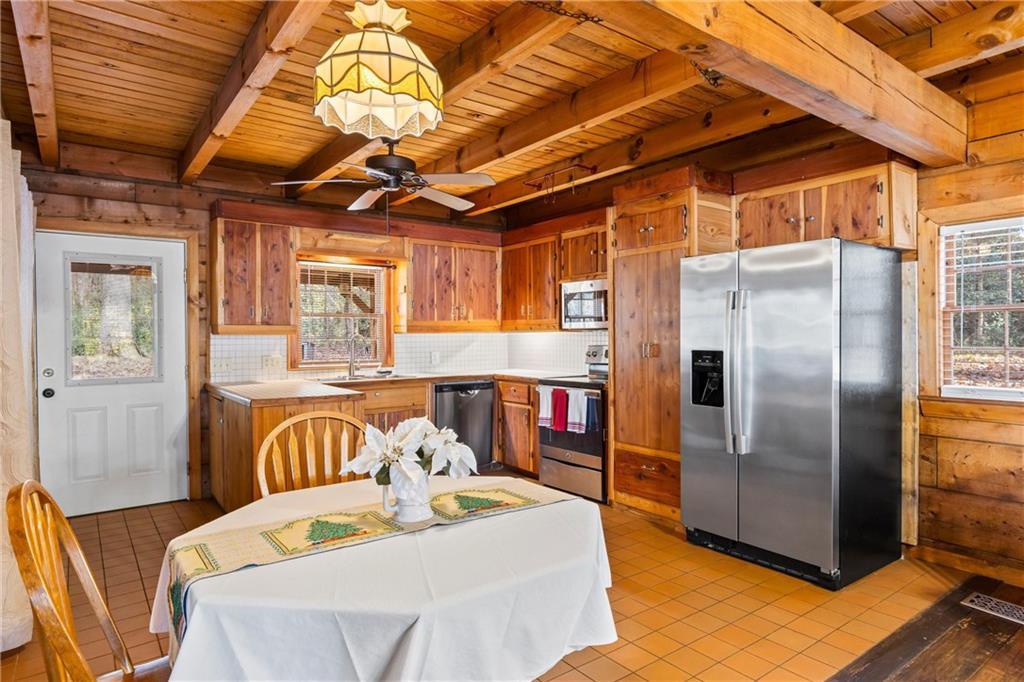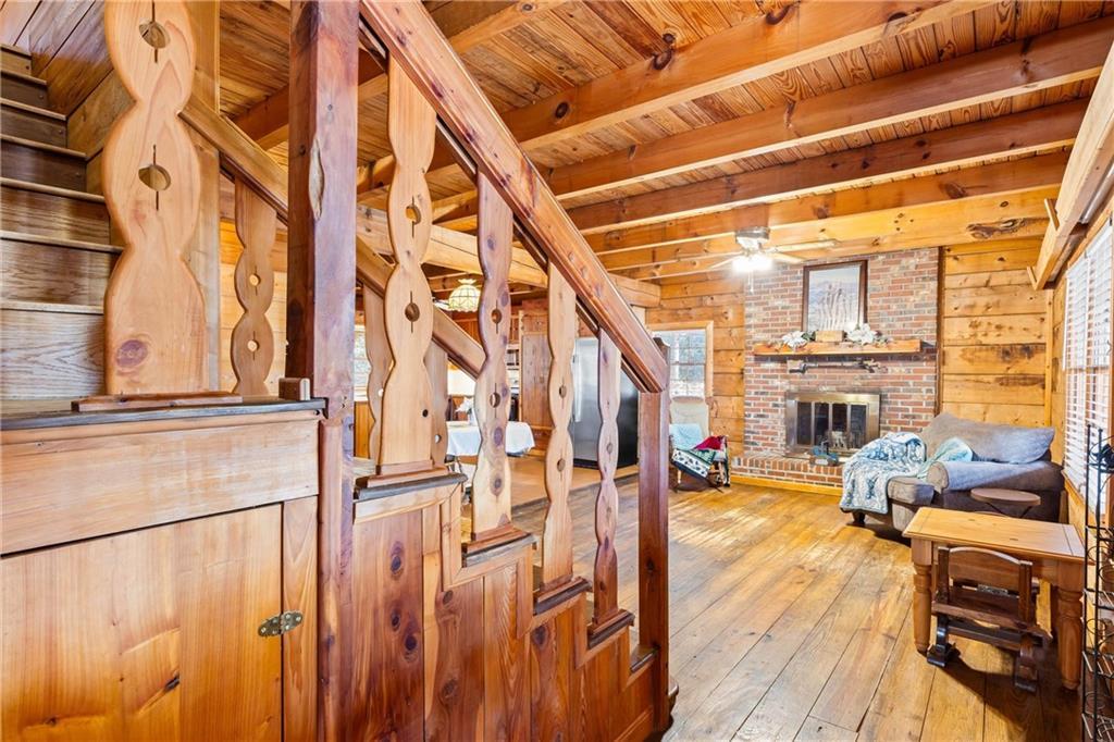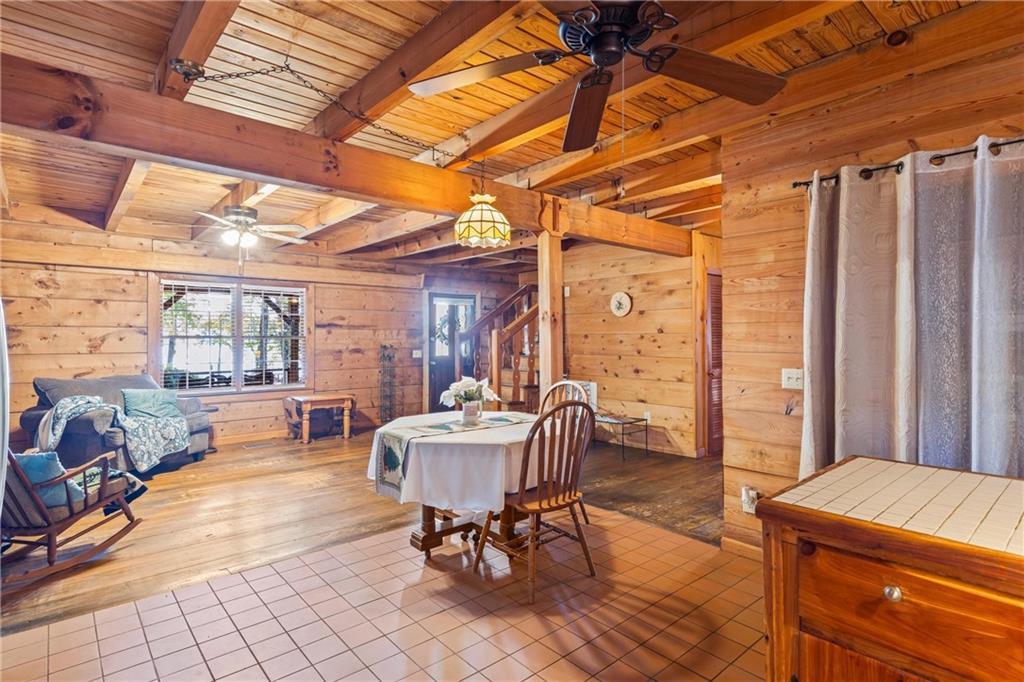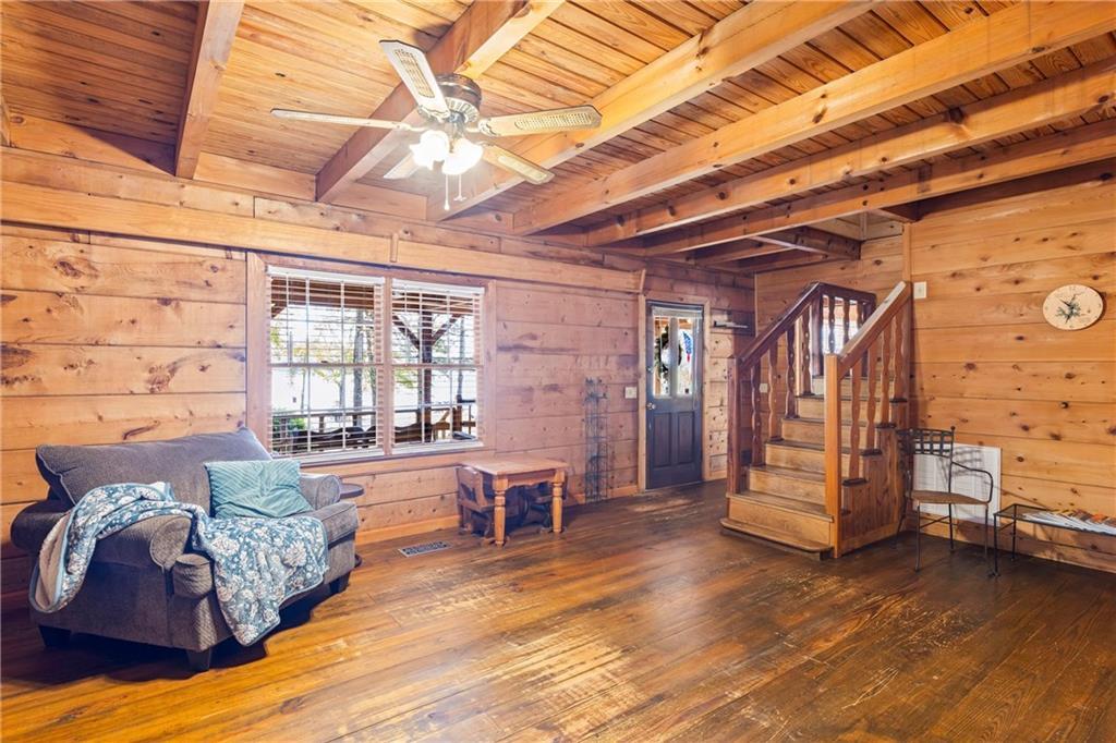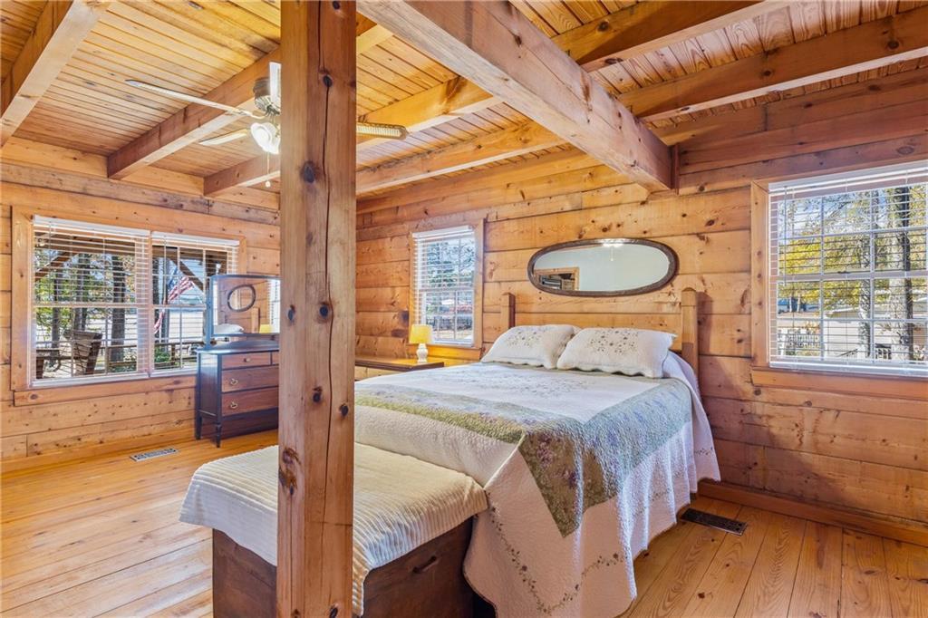 Description: This a real lakefront log cabin with all the comforts, modern kitchen, updated HVAC, no HOA, main bedroom on the first floor all others upstairs. There is a dock on the deeded waterfront. All for the price of a condo! This beautiful cabin is located less than a mile away from Niffer's and Oskar's and a short boat ride to Blue Creek Marina. Herren Camp is is not a through road so there is minimal car traffic.