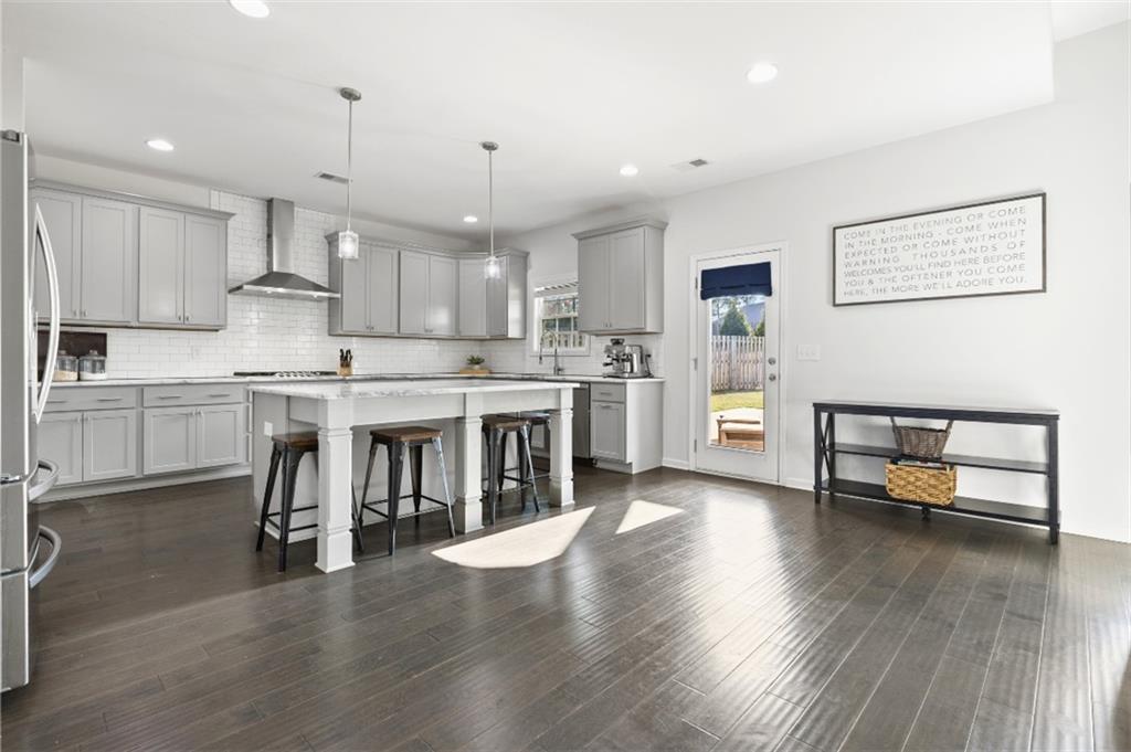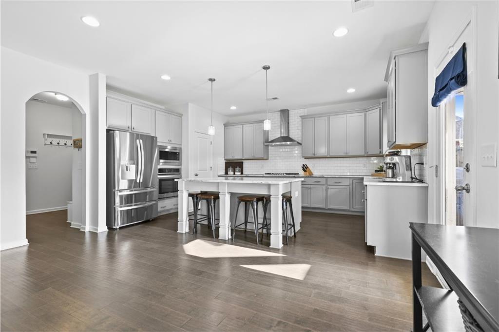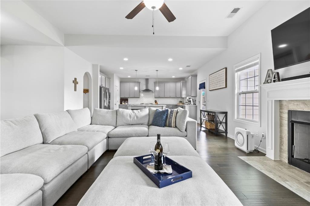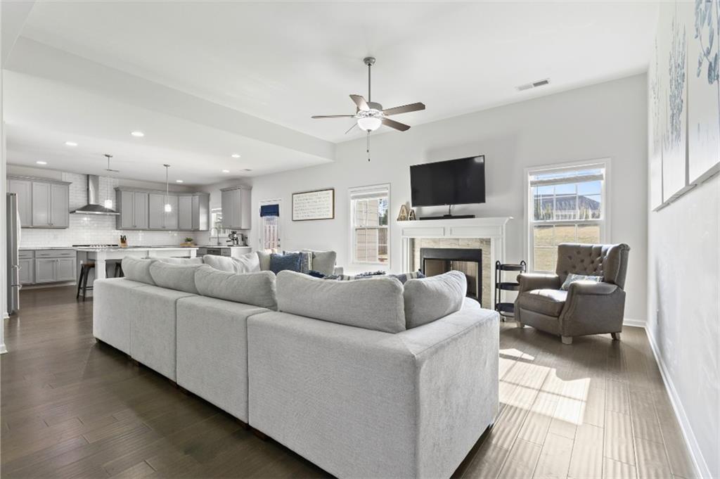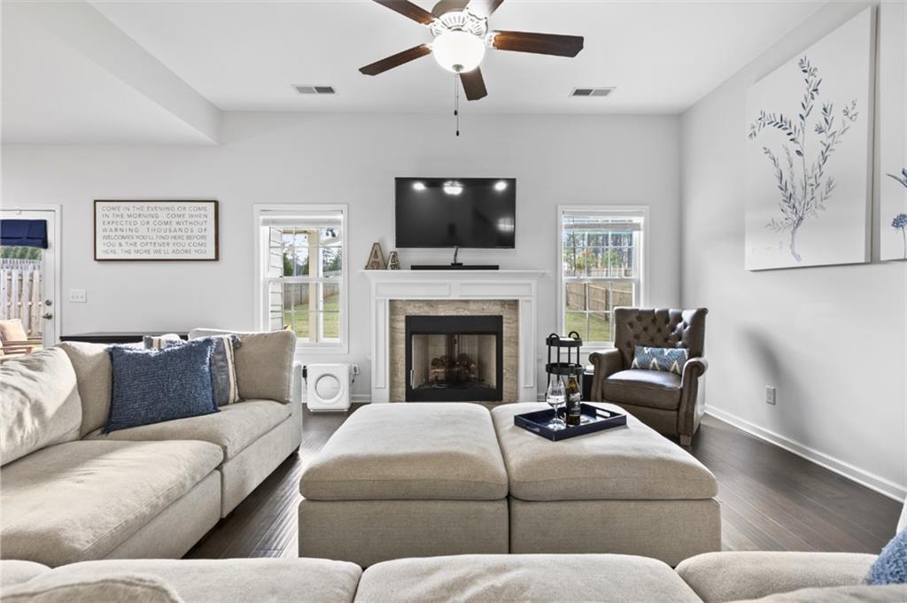 Description: Three things we think you'll really love about this home: 1. Bright, sunny rooms throughout. 2. Spacious rooms with great flow. 3. Huge fenced backyard with lots of flat space. Additional appealing features: on-trend finishes, wood floors, primary suite on main, three options for dining: formal dining room, counter height seating at the giant kitchen island, and outside on the covered porch-complete with fan for warm weather and fireplace for cool weather, drop zone, pantry, and tons of storage. Amenities include a neighborhood pool (near but not too near), playground and pavilion. Give it a look!