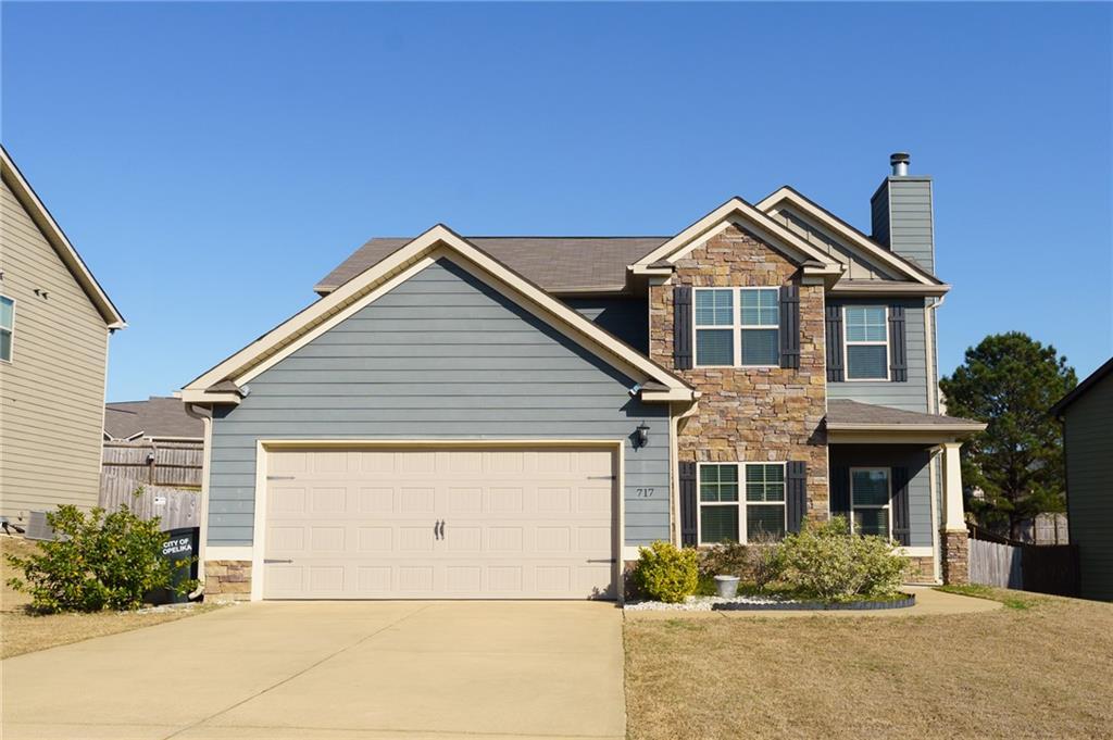 Description: Welcome to 717 Dingo Drive! This move-in ready 4-bedroom, 3-bath offers comfortable living in a convenient Opelika location, only minutes way from I-85 and Tiger Town. The open layout features a spacious living area, a functional kitchen with great flow, and comfortable bedrooms that allow flexibility for guests, a home office, or everyday life. The primary suite is spacious and filled with ample natural light and includes an ensuite with walk-in tile shower, garden tub, and double sink vanity. One bedroom is downstairs with a bathroom directly across the hall, and the two additional bedrooms are thoughtfully positioned across from the primary suite. A covered patio adds usable outdoor space, and the two-car garage provides practical storage and parking.