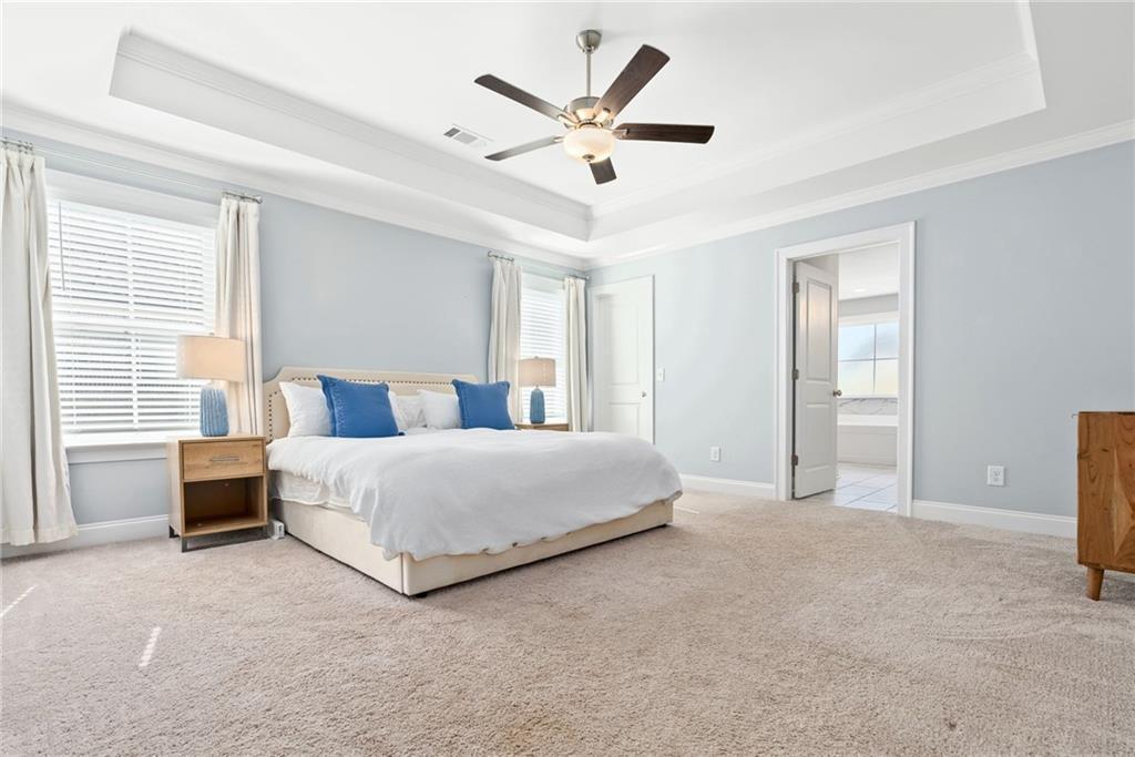 Description: Welcome home to this like-new 4 bedroom, 3 bathroom home in the desirable Oak Creek community! Step inside to a welcoming foyer adorned with classic wainscoting that sets the tone for the thoughtful details throughout. The open-concept floor plan features an oversized living room with a vaulted ceiling and cozy gas fireplace, seamlessly flowing into the dining area and spacious kitchen. The kitchen offers abundant cabinet storage and counter space, a large island, walk-in pantry, and easy access to the rear patio and backyard — perfect for everyday living and entertaining. The main level boasts a generous primary suite complete with dual walk-in closets and a private ensuite bath featuring a double vanity, garden tub, separate walk-in shower, and linen closet. Two additional bedrooms share a full bath, and the conveniently located laundry room leads directly to the 2-car garage. Upstairs, you’ll find an oversized fourth bedroom that is incredibly versatile — ideal as a guest suite, bonus room, home office, or media space — complete with a large closet and private ensuite bath. The backyard is designed for entertaining with both covered and uncovered patio spaces overlooking a large, flat yard. Seller is including the refrigerator, washer and dryer, two garage shelving units, TV mounted above the fireplace, living room couch and rug, and the upstairs queen bed — making this home truly move-in ready. Property is currently tenant-occupied through May 5, 2026, offering a great opportunity for investors or buyers planning ahead. Neighborhood pool is also included