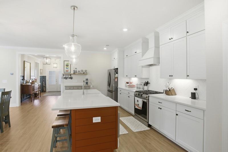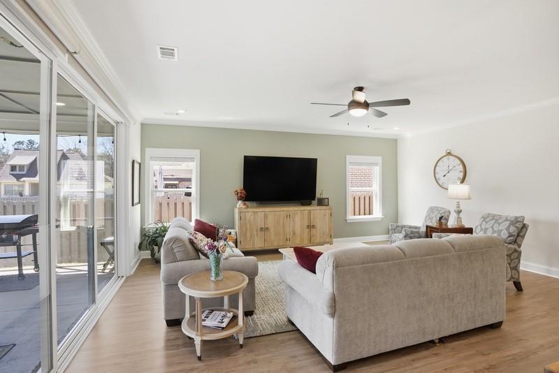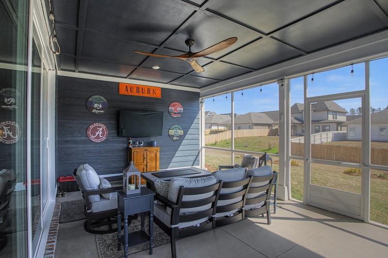 Description: This "better than new" home is a masterclass in upgraded Southern living. This property has been meticulously refined with high-end architectural details that set it apart from the standard builder grade. This immaculate Portsmouth floor plan offers sophisticated one-level living refined with extensive custom upgrades. The journey begins in the elegant foyer, featuring designer wainscoting that sets a welcoming and polished tone for the home. The expansive open floor plan is bathed in natural light, emphasizing the home's immaculate condition. High ceilings and thoughtful transitions make the space feel both grand and intimate. At its heart, the kitchen, dining, and great room create a seamless flow, perfect for effortless entertaining and everyday comfort. The primary suite is a true retreat, privately tucked away for maximum separation from the secondary bedrooms. This home stands apart with additional architectural details extended into the bedrooms and a laundry room upgraded with custom cabinetry for stylish storage.Transition outdoors to the ultimate "Game Day" screened porch, which extends your living space into a large backyard. Perfectly designed for entertaining -the outdoor living space allows you to enjoy the Alabama breeze in comfort, whether you're hosting a Saturday kickoff or a quiet morning coffee. This home combines a functional, modern layout with "better than new" craftsmanship.This home is a rare find in pristine condition so make an appointment today!