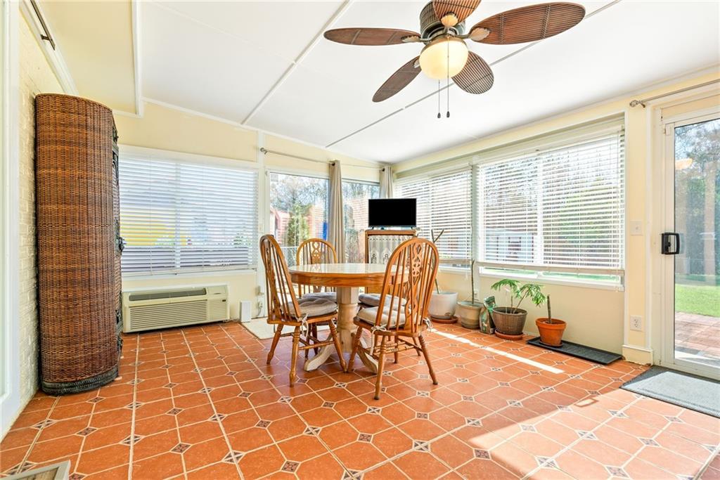 Description: Country living with room to breathe and all on nearly 2 acres! This 2 bedroom, 2 bathroom home offers flexible space with a bonus room/den that could easily function as a third bedroom, office, playroom, or additional dining area. The primary bathroom has been beautifully remodeled with a ceramic tile shower, updated flooring, double vanity, new mirror, and lighting. The great room features a cozy gas-insert stone fireplace, while the kitchen offers an eat-in area, pantry, KitchenAid dishwasher and charming built-in dish cabinet. Just off the main living area, you’ll find a spacious laundry room with room for a freezer or extra refrigerator. One of the standout features is the huge sunroom — complete with custom ceramic tile, oversized windows, three sliding glass doors, and its own separate heating and cooling system — flooding the space with natural light year-round. Outside, the property continues to impress: • Generac whole-home generator • Gutters with Leaf Guard • 3 outbuildings ( all with electricity) • Double carport + RV/boat port with water/30-amp electric access • Blacktop driveway with large parking area + Circular drive • Covered patio + three additional open patios • Assortment of fruit trees, including apple, peach, pear, and pecan tree. Blueberry bushes, roses, azaleas, confederate rose bushes, etc. • Large chain link fenced yard and Fire-pit surrounded by beautiful plants and evergreens It even has a vineyard with grapes/muscadines. This is a home that offers a haven for birds, hummingbirds and butterflies. Don't miss this opportunity for peaceful country living.