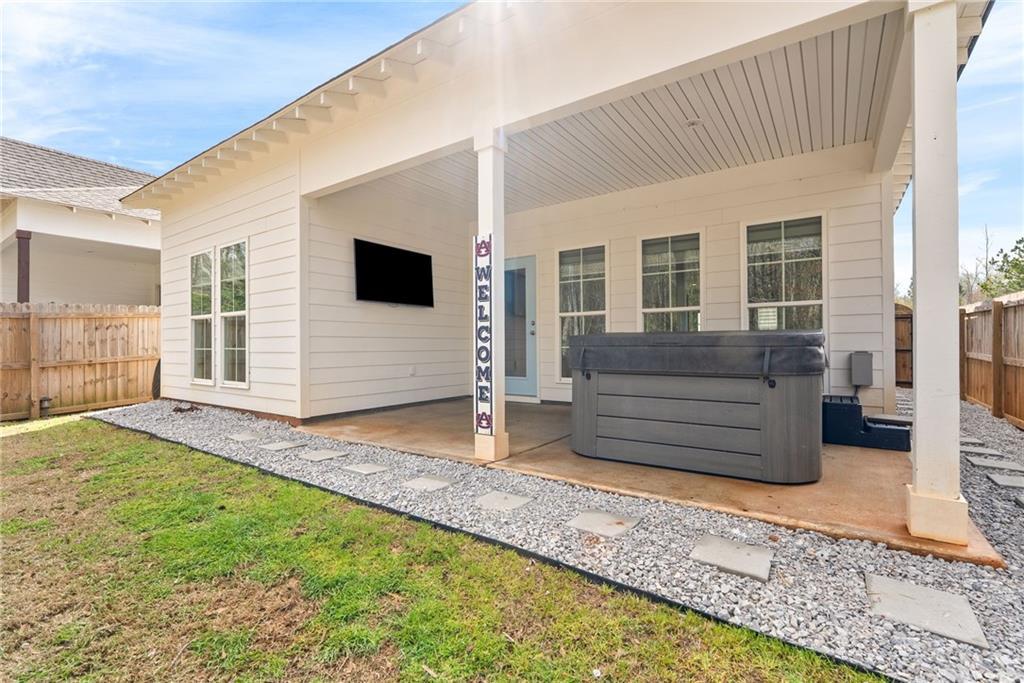 Description: Like NEW at BETTER THAN NEW PRICE!! This popular three bedroom, two bathroom plan offers 1400 square feet with NO CARPET! The front door opens to a spacious foyer and a coat closet. The foyer leads to the expansive kitchen and dining room area. This kitchen has ample cabinetry, counter space and nice size pantry! Great size laundry room off kitchen with additional storage. The kitchen leads to the living room which features 9 foot ceilings and windows that flood the room with natural light! The primary suite off the living room includes upgraded paneling. Primary bath includes double vanity and an upgraded spacious tiled shower. LARGE walk-in closet. The living room also gives way to the covered back porch with for ideal outdoor living in COMPLETE PRIVACY! The covered porch is the perfect for enjoying company or quiet time. Backyard is fenced. Neighborhood amenities include a resort-style pool and pavilion! Refrigerator and washer/dryer will remain! Custom window shades throughout home. This home is ready for immediate occupancy!! *Neighborhood allows short term rentals**