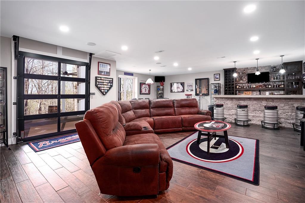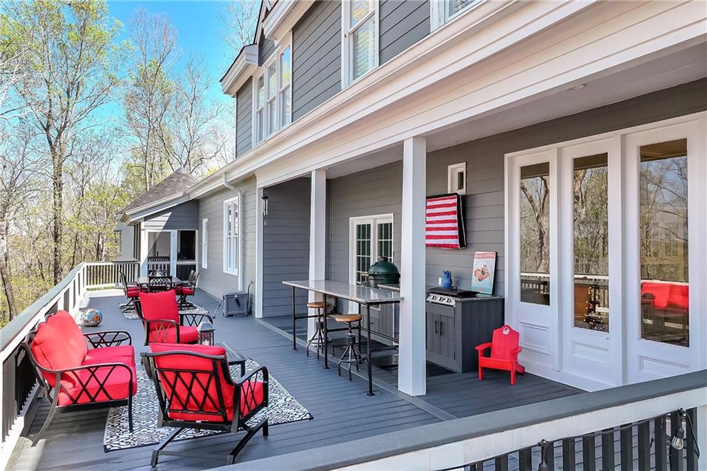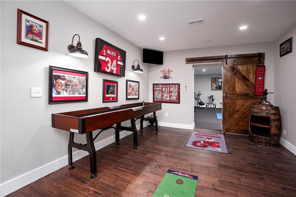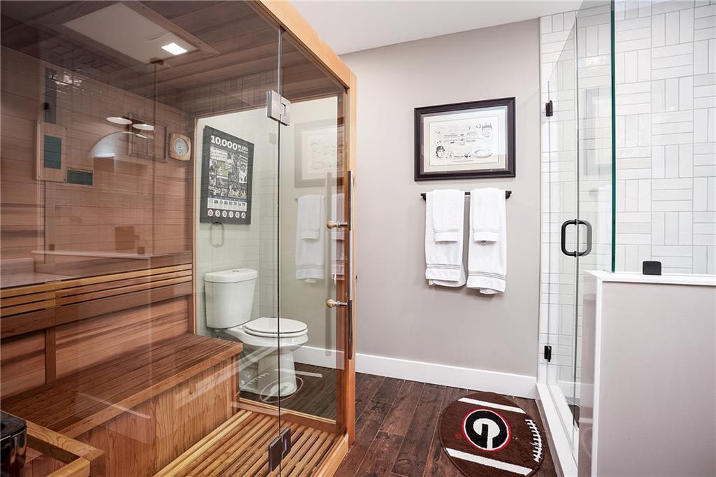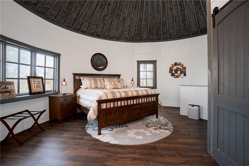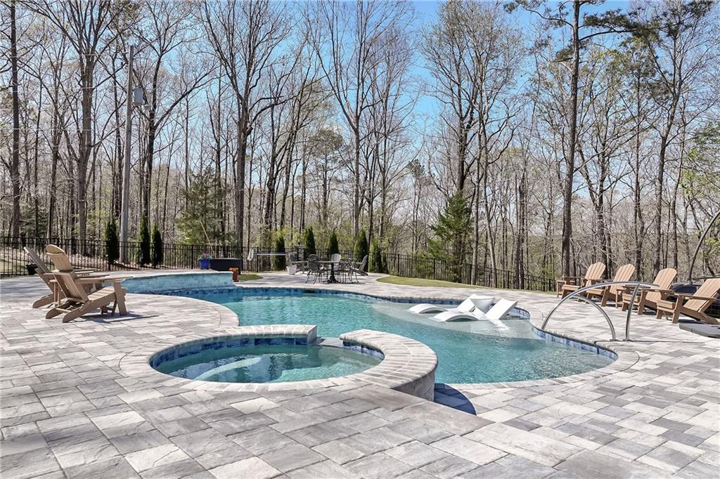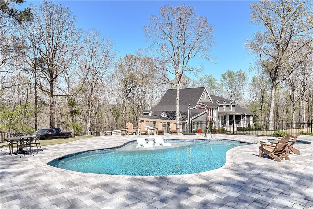 Description: Stunning 5 bedroom, 5.5 bath estate on 8.76 private, wooded acres in the desirable Moore’s Mill / Ogletree area of Auburn. This one of a kind property blends over $600K in recent renovations with historic reclaimed architectural elements and exceptional indoor and outdoor living spaces. Unique details include leaded and stained glass windows and doors salvaged from a turn of the century church in Cullman, Alabama, along with hardwood floors reclaimed from a 1920s gymnasium, bringing warmth and character throughout the home. The main living area features vaulted ceilings with wood accent beams and a grand fireplace, flowing into the updated chef’s kitchen and spacious gathering areas. The primary suite offers a true retreat with a spa style bath, while a 250 sq ft screened porch overlooks the peaceful wooded setting. The finished walk-out basement creates the ultimate man cave and entertaining space with five mounted TVs, built-in gun safe, and custom full bar. A dedicated professional level fitness studio includes shock absorbent flooring, floor to ceiling mirrors, and an adjacent full bath with built-in sauna, creating a private wellness retreat. Additional unique features include a multi story silo tower with full bath, perfect for guest space, private office, or creative studio. Outdoor living is exceptional with a 950 sq ft deck featuring an outdoor kitchen and bar, a 20x40 heated gunite pool with three waterfalls, an eight person hot tub, brick paver patio, and gas fire pit. The 8.76 acre property spans two adjacent lots, offering privacy while also providing future flexibility or potential opportunities. Recent improvements include a new roof, repaved driveway, and three car garage. A rare opportunity to own a truly distinctive estate with nearly 8,000 sq ft of living space in one of Auburn’s most desirable areas.