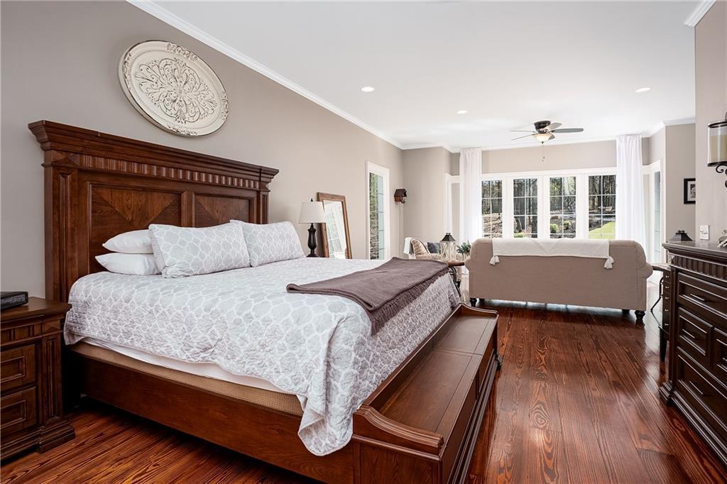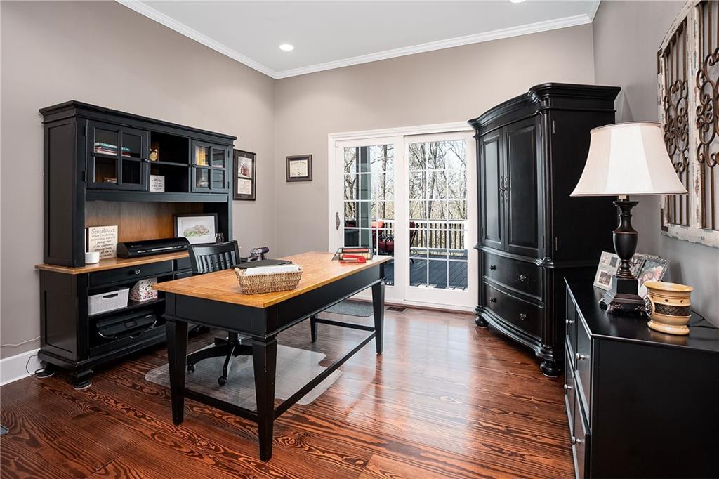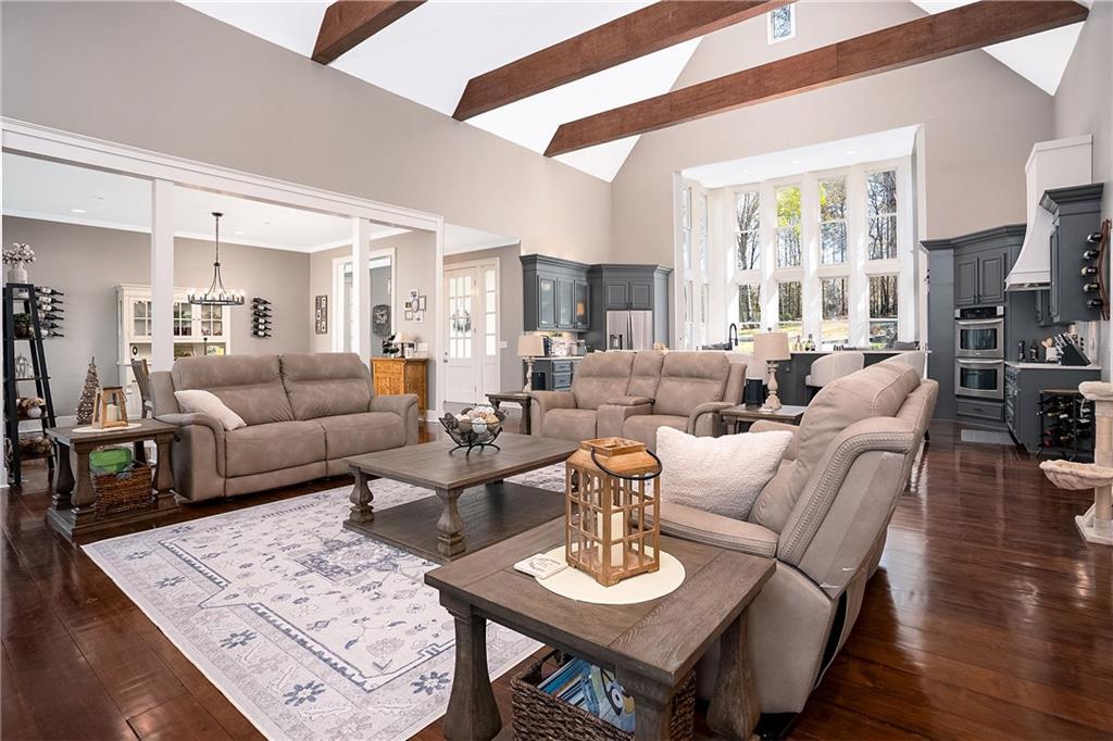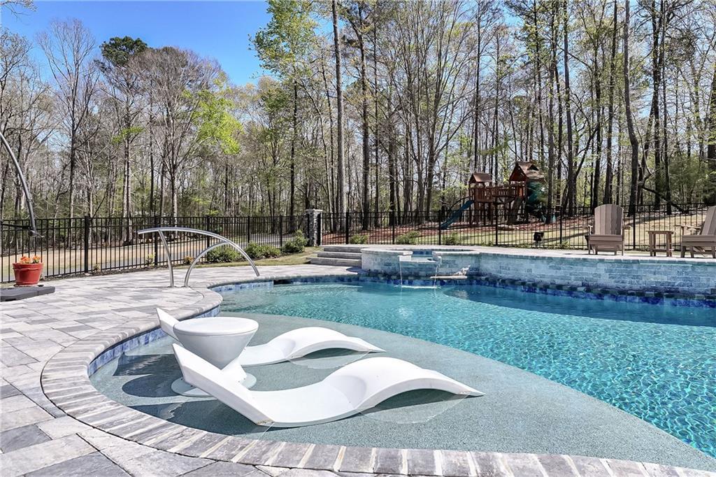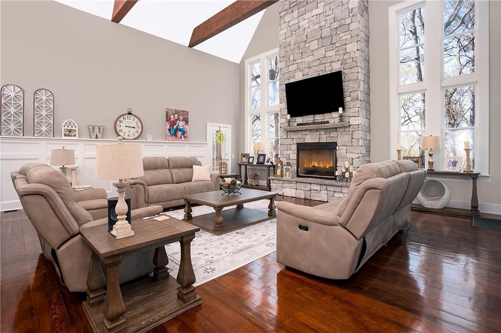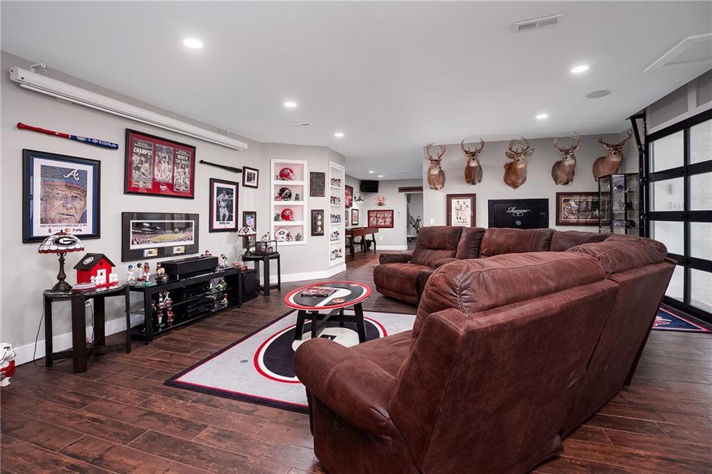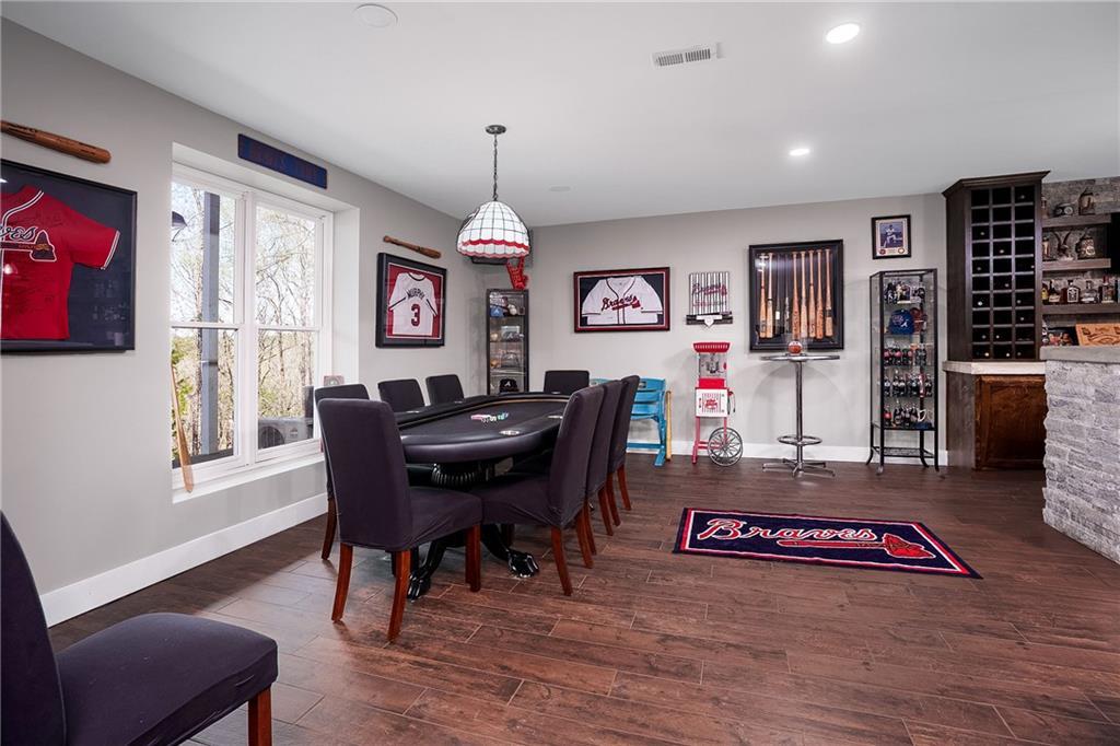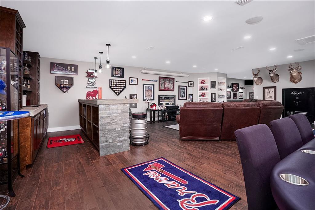 Description: Stunning 5 bedroom, 5.5 bath estate on 8.76 private, wooded acres in the desirable Moore’s Mill / Ogletree area of Auburn. This one of a kind property blends over $600K in recent renovations with historic reclaimed architectural elements and exceptional indoor and outdoor living spaces. Unique details include leaded and stained glass windows and doors salvaged from a turn of the century church in Cullman, Alabama, along with hardwood floors reclaimed from a 1920s gymnasium, bringing warmth and character throughout the home. The main living area features vaulted ceilings with wood accent beams and a grand fireplace, flowing into the updated chef’s kitchen and spacious gathering areas. The primary suite offers a true retreat with a spa style bath, while a 250 sq ft screened porch overlooks the peaceful wooded setting. The finished walk-out basement creates the ultimate man cave and entertaining space with five mounted TVs, built-in gun safe, and custom full bar. A dedicated professional level fitness studio includes shock absorbent flooring, floor to ceiling mirrors, and an adjacent full bath with built-in sauna, creating a private wellness retreat. Additional unique features include a multi story silo tower with full bath, perfect for guest space, private office, or creative studio. Outdoor living is exceptional with a 950 sq ft deck featuring an outdoor kitchen and bar, a 20x40 heated gunite pool with three waterfalls, an eight person hot tub, brick paver patio, and gas fire pit. The 8.76 acre property spans two adjacent lots, offering privacy while also providing future flexibility or potential opportunities. Recent improvements include a new roof, repaved driveway, and three car garage. A rare opportunity to own a truly distinctive estate with nearly 8,000 sq ft of living space in one of Auburn’s most desirable areas.